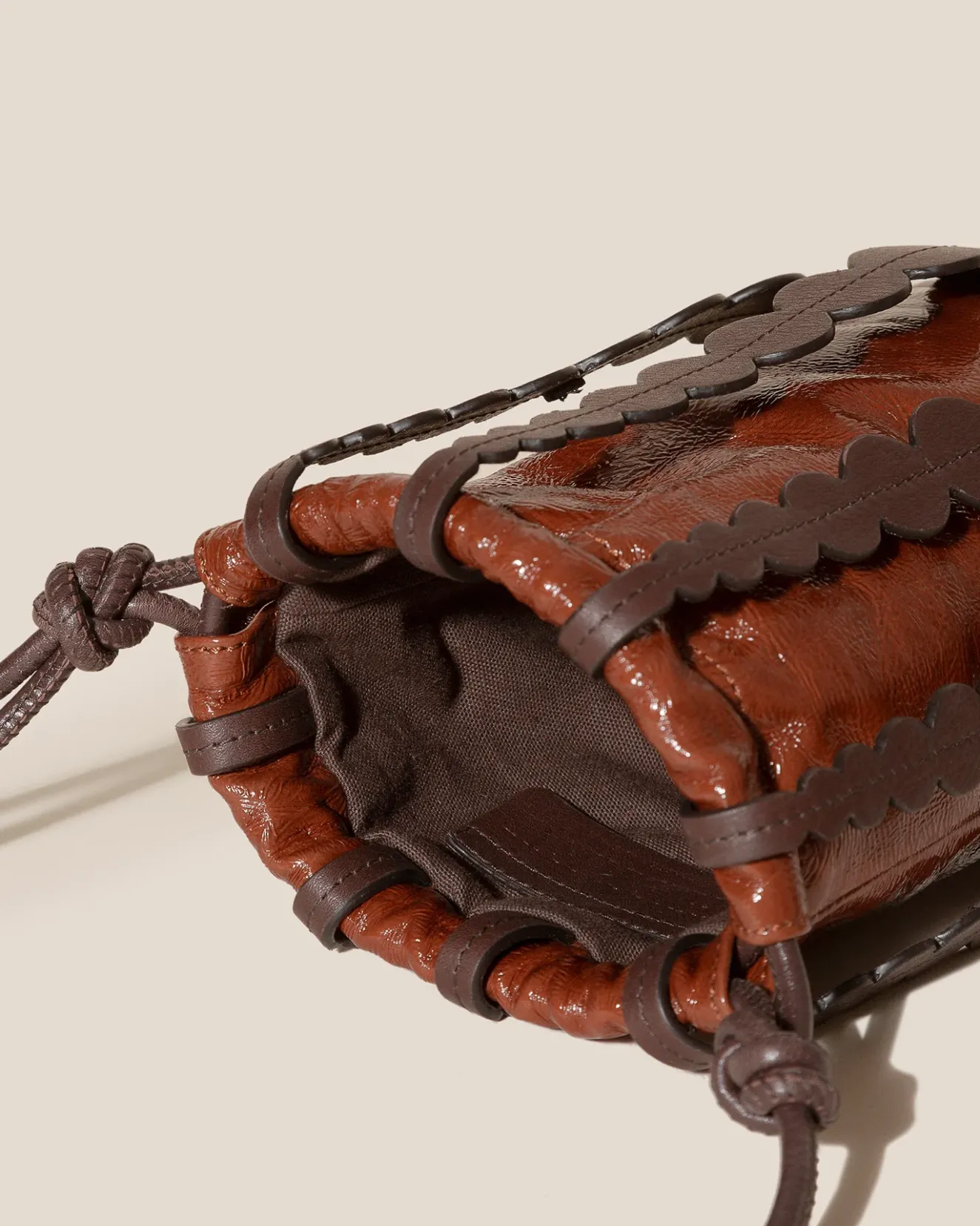 Mini Drawstring Tote Crafted In Crinkled Glossy Lambskin And Smooth Calf Letaher.Made In Spain By Uniquely Talented Artisans, Celebrating Excellence In Craftsmanship.