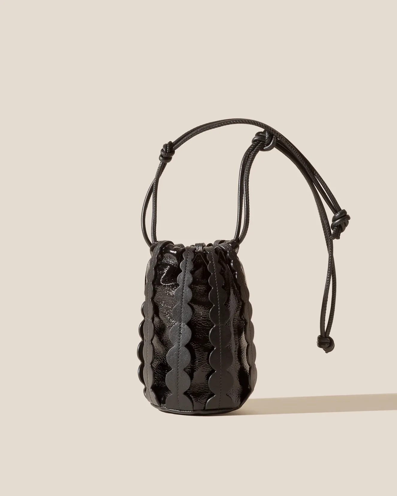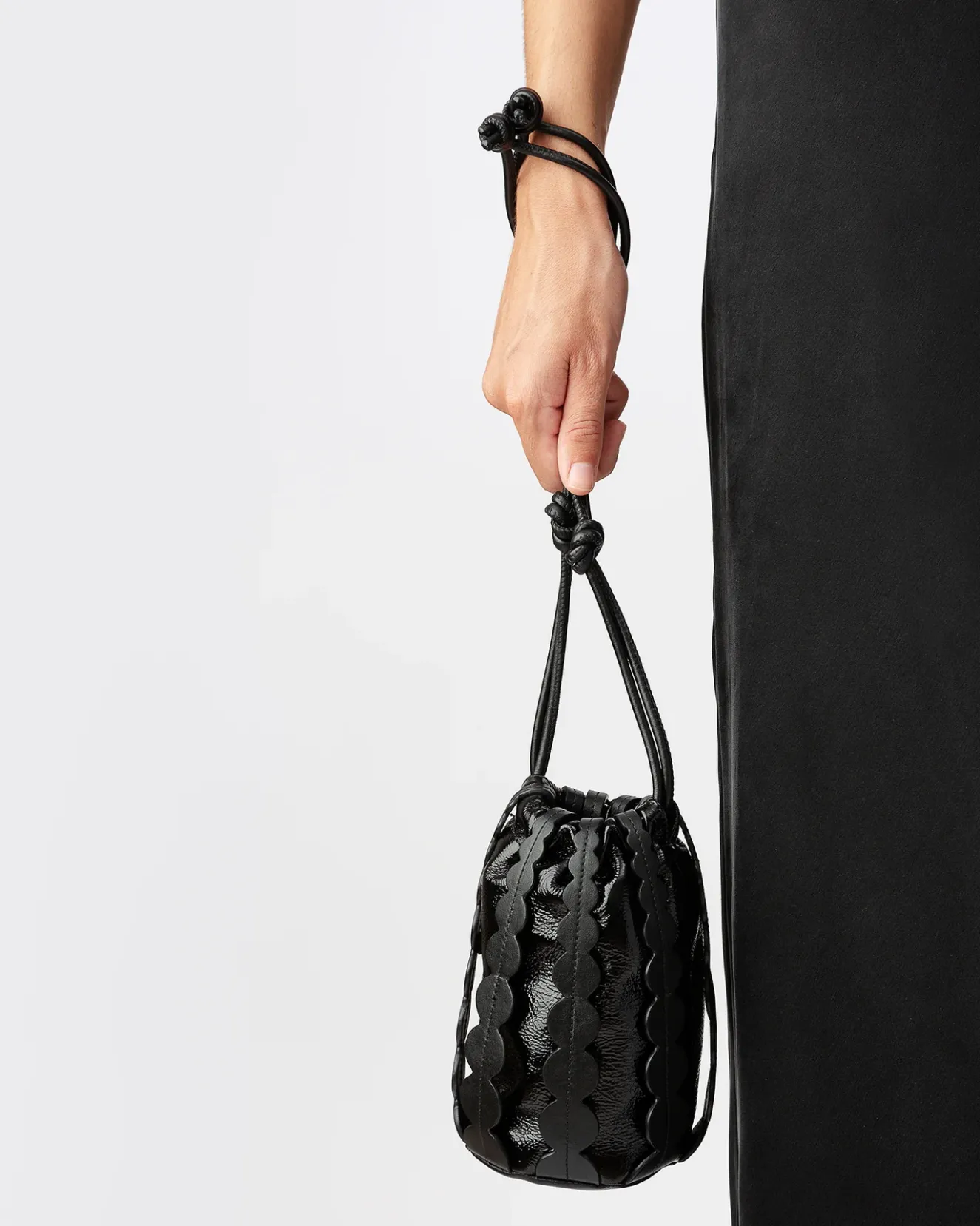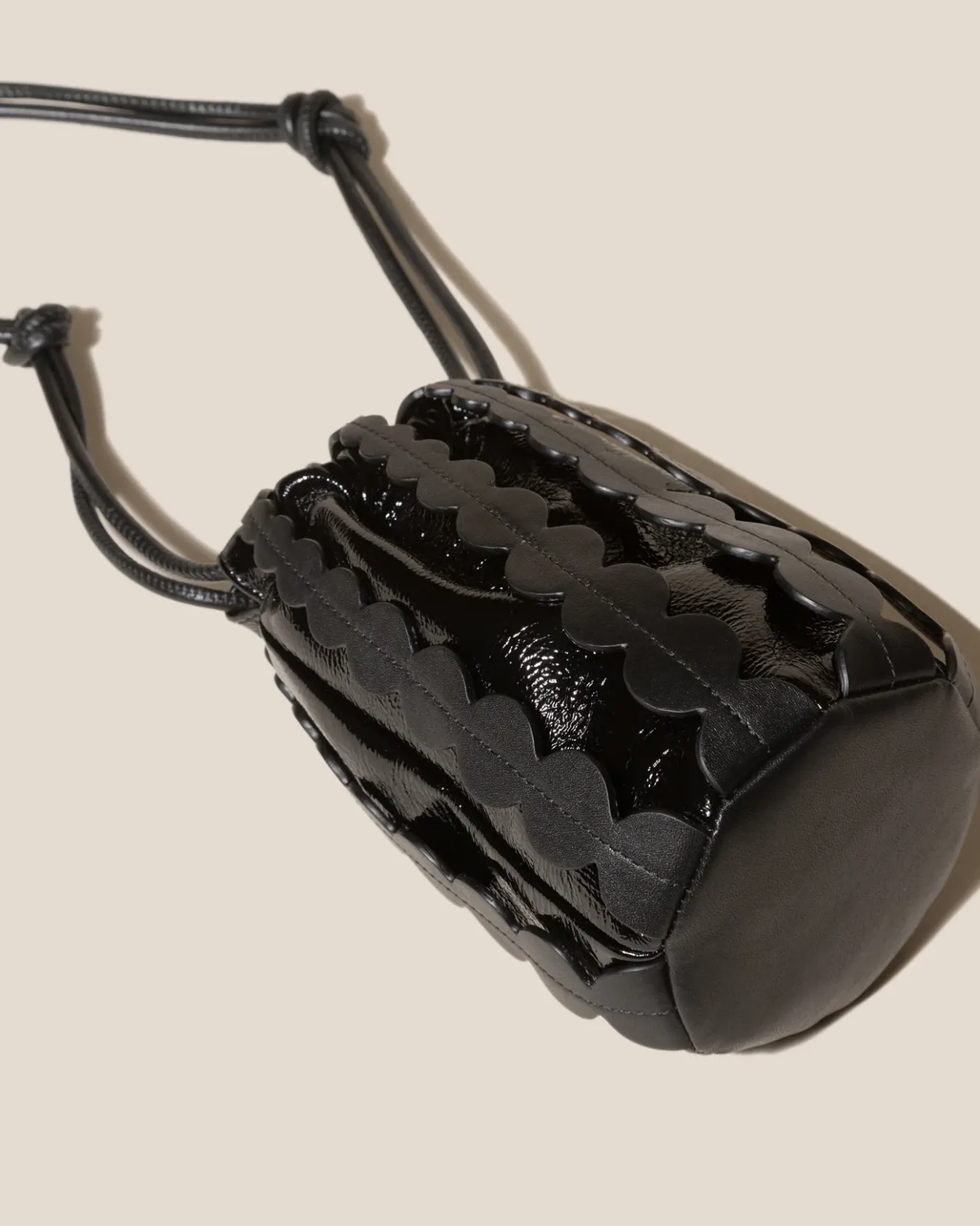 Mini Drawstring Tote Crafted In Crinkled Glossy Lambskin And Smooth Calf Letaher.Made In Spain By Uniquely Talented Artisans, Celebrating Excellence In Craftsmanship.