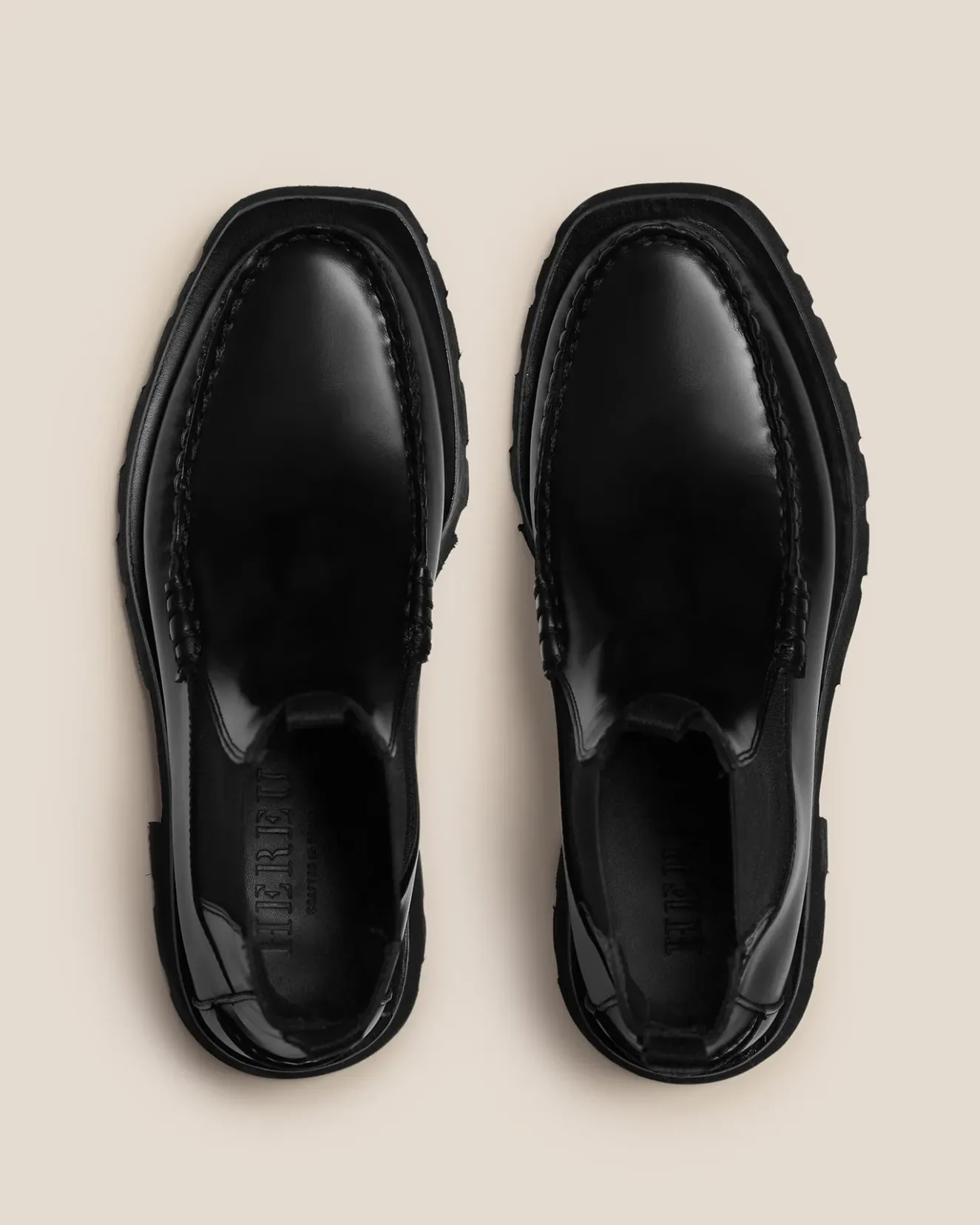 Mid-Calf Chelsea Boot Crafted In Spanish Full-Grain Black Calf Leather. Hand Sewn Using The Traditional Moccasin Construction. Made In Spain, By Local Artisans Using Local Materials, Celebrating Excellence In Craftsmanship.