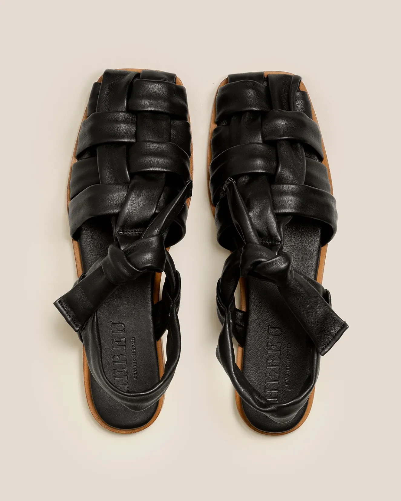 Interwoven Knotted T-Bar Sandal Crafted In Italian Supple Lambskin.Made In Spain By Uniquely Talented Artisans, Celebrating Excellence In Craftsmanship.