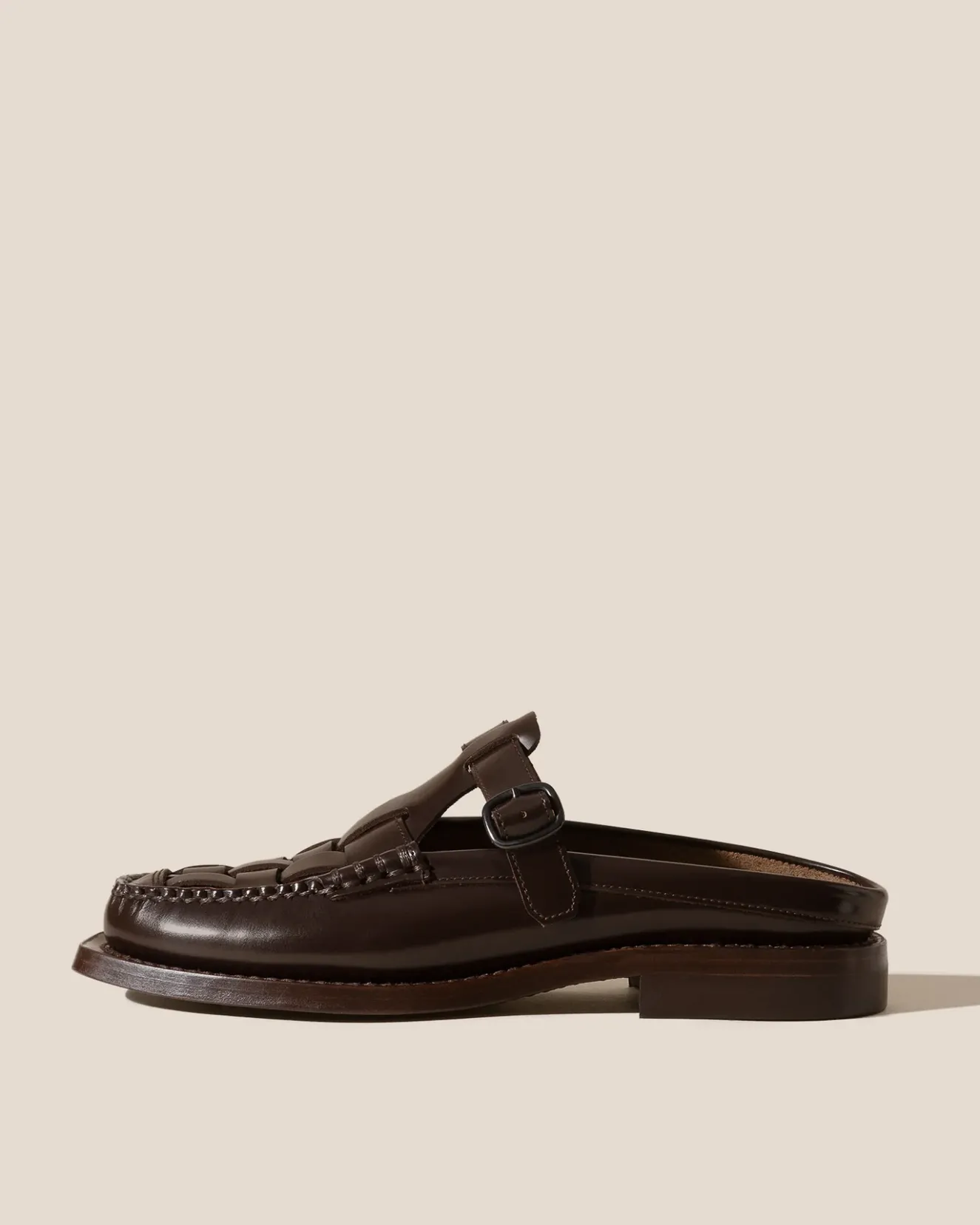 Woven T-Bar Mule Loafer Crafted In Spanish Structured Calf Leather.Made In Spain By Uniquely Talented Artisans, Celebrating Excellence In Craftsmanship.