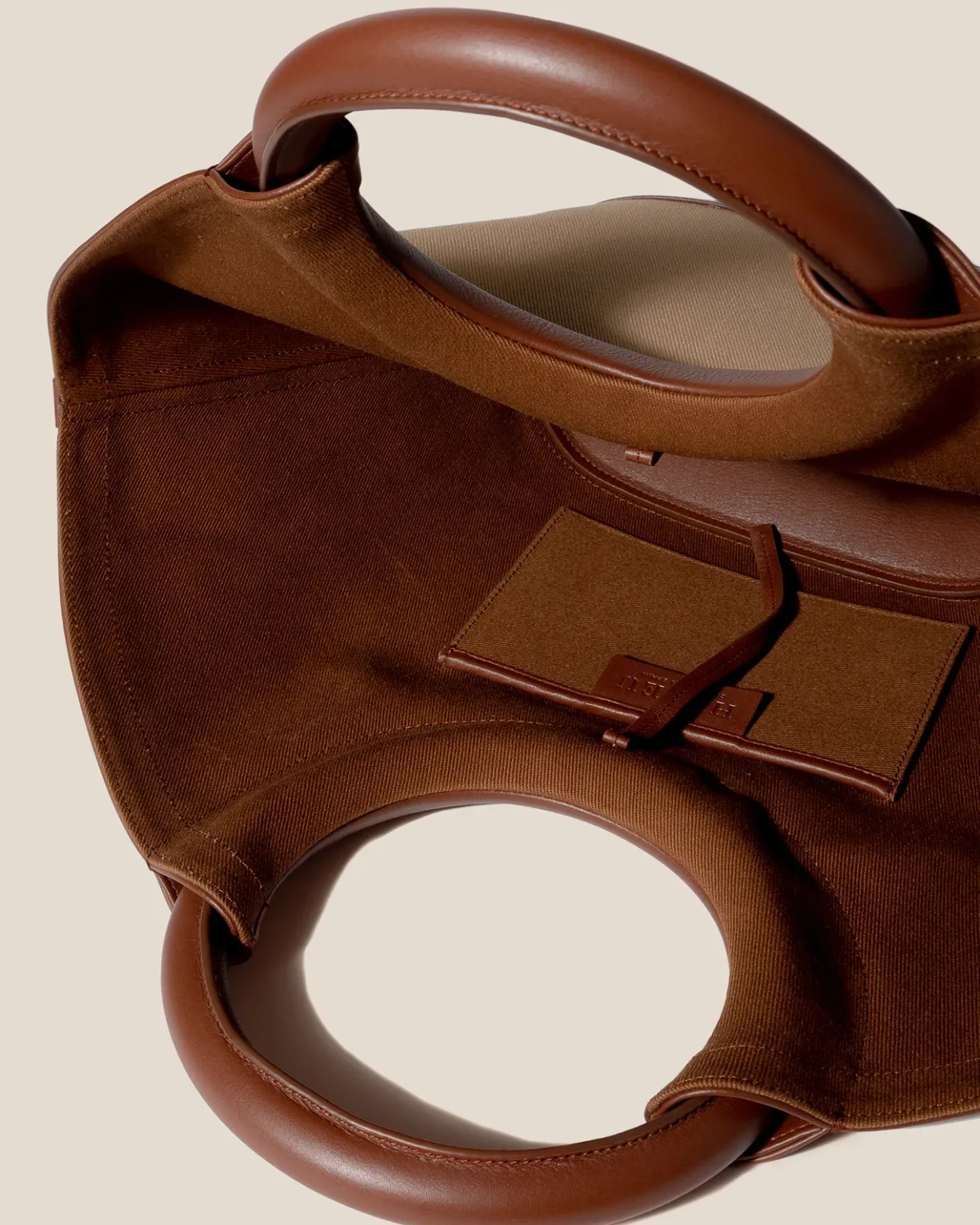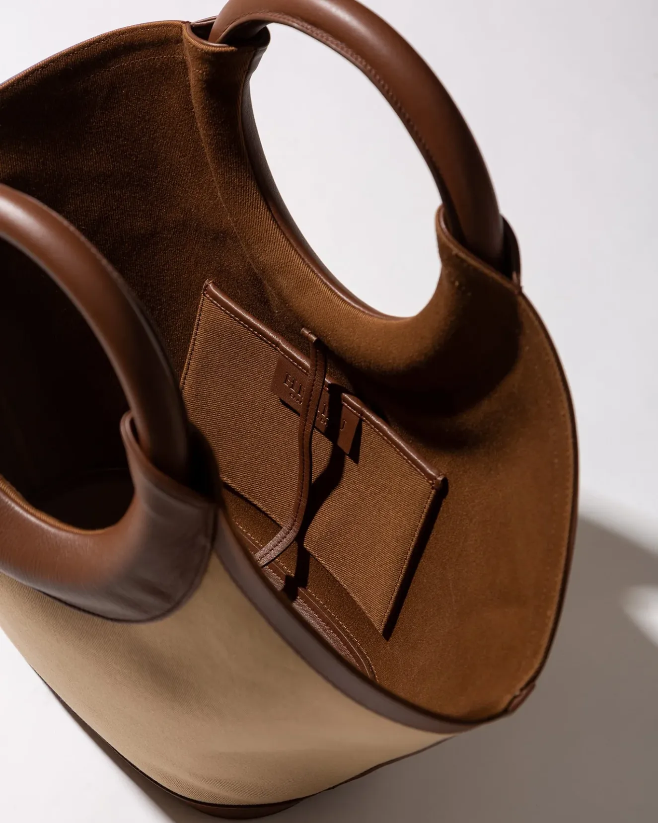 Canvas Tote With Round Leather Handle Crafted In Heavy Cotton Twill And Trimmed With Calf Leather And Cotton Lining.Made In Spain, By Local Artisans, Celebrating Excellence In Craftsmanship.