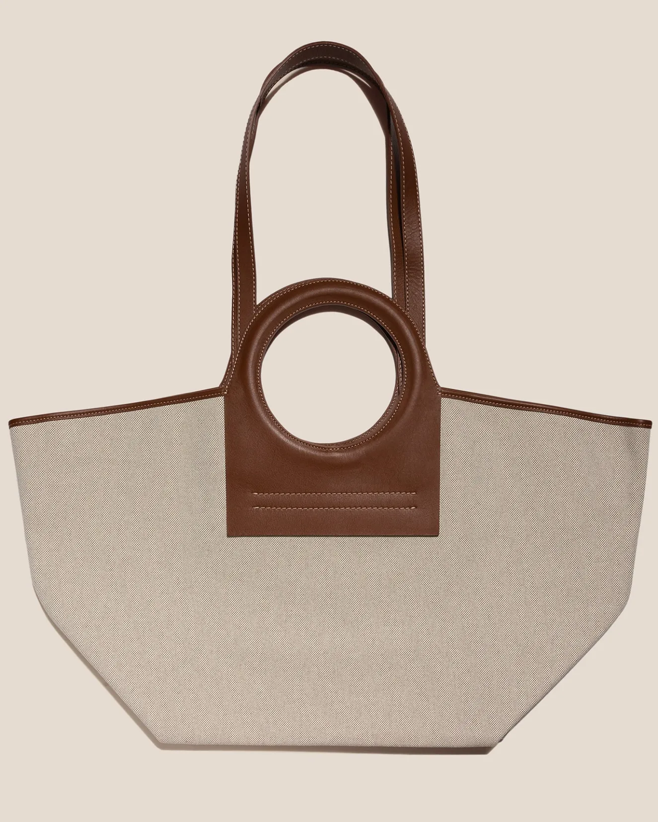 Tote Bag Constructed From Premium Ecru Canvas With Leather Handles And Trims, Lined With Natural Cotton Canvas.Made In Spain By Uniquely Talented Artisans, Celebrating Excellence In Craftsmanship.