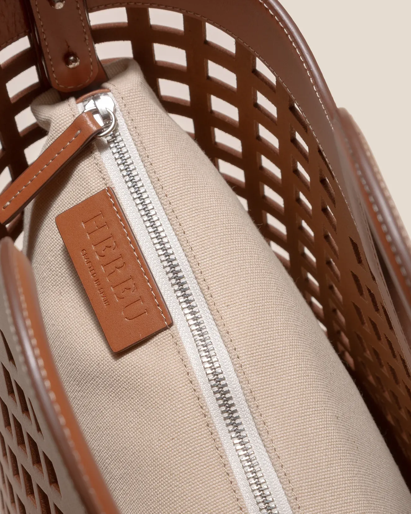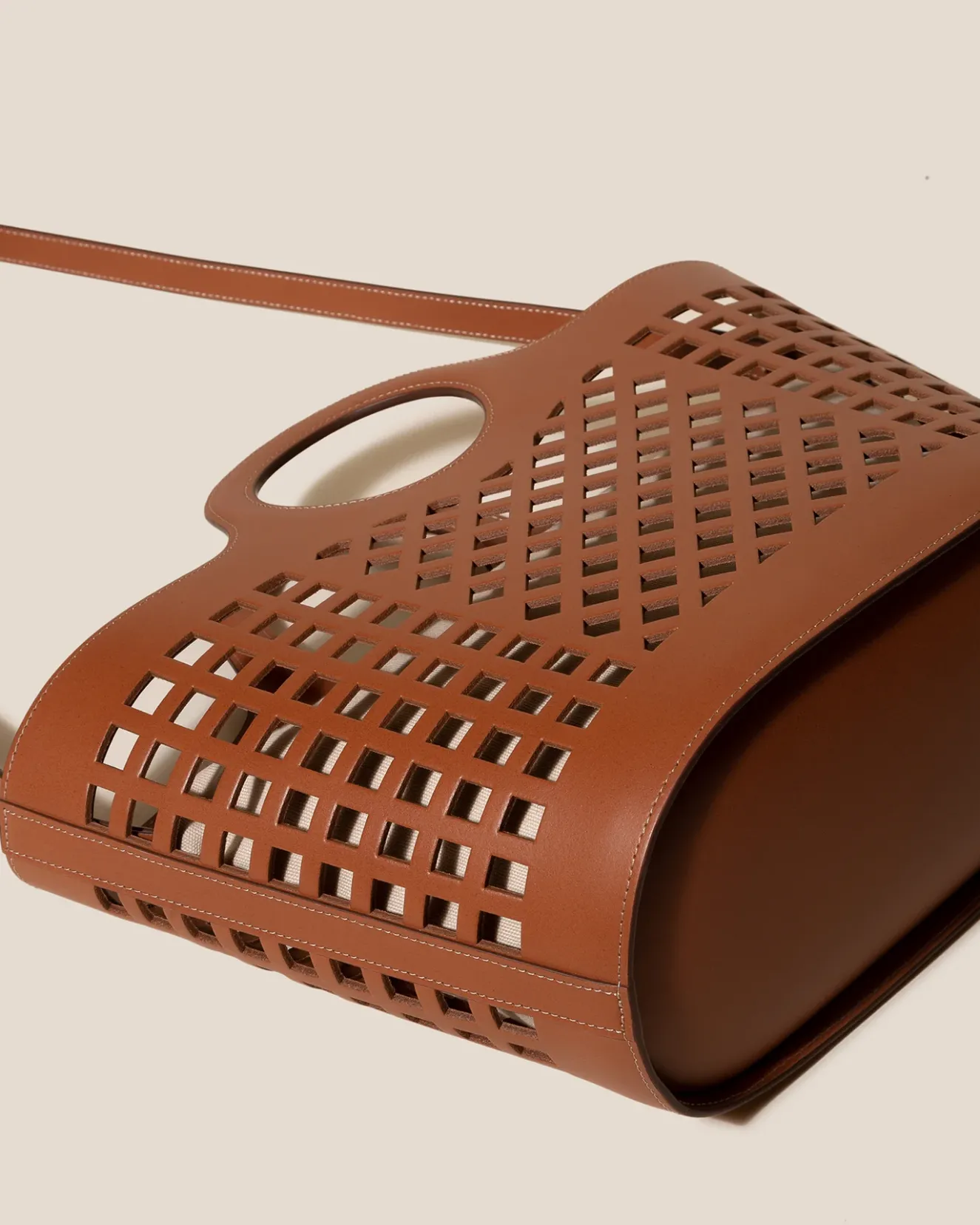 Cut-Out Leather Tote Crafted In Smooth Calf Leather. A Basket Silhouette With Circular Cut-Out Handles.Handmade In Spain By Uniquely Talented Artisans, Celebrating Excellence In Craftsmanship.