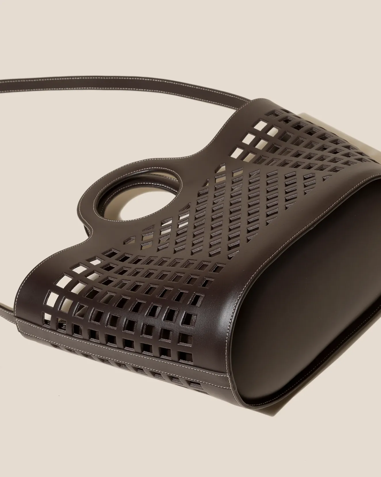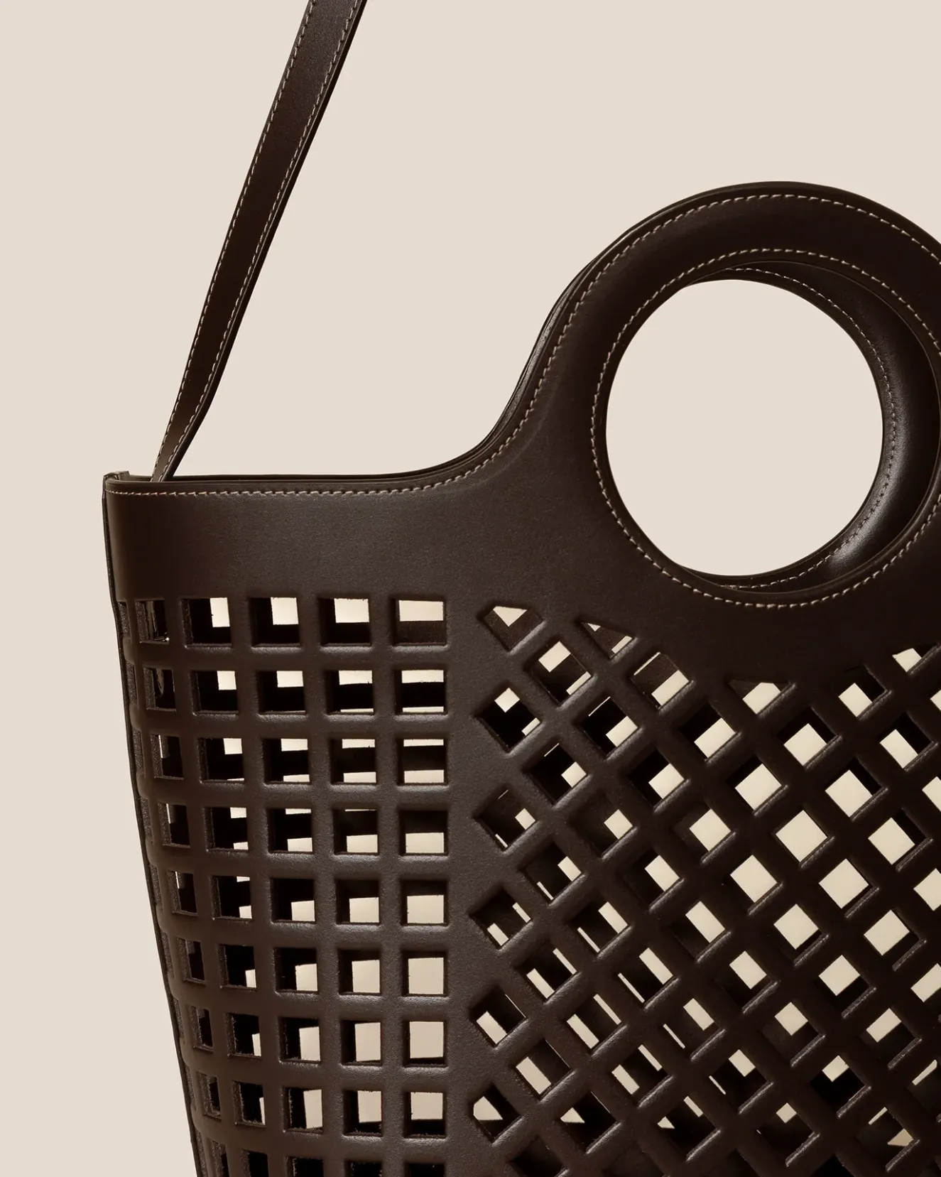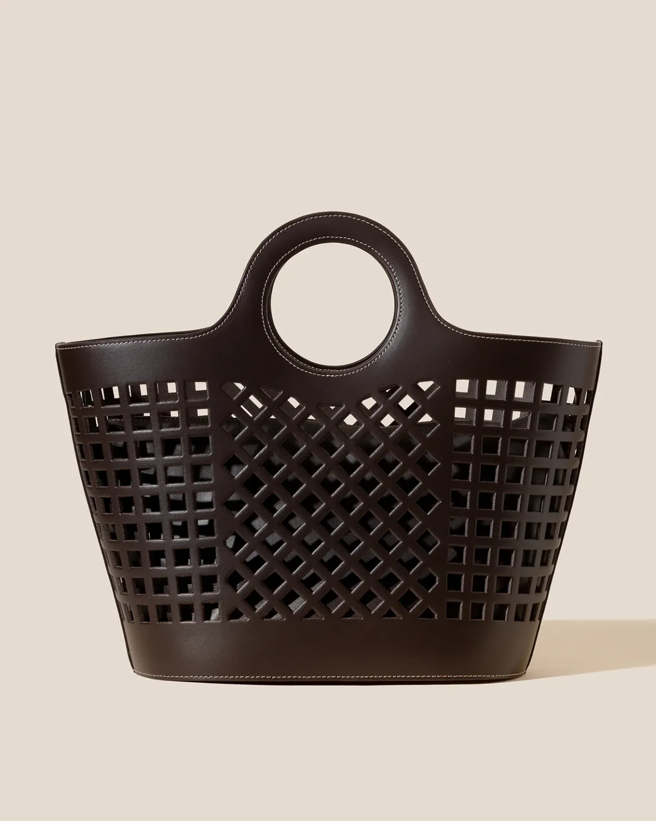 Cut-Out Leather Tote Crafted In Smooth Calf Leather. A Basket Silhouette With Circular Cut-Out Handles.Handmade In Spain By Uniquely Talented Artisans, Celebrating Excellence In Craftsmanship.