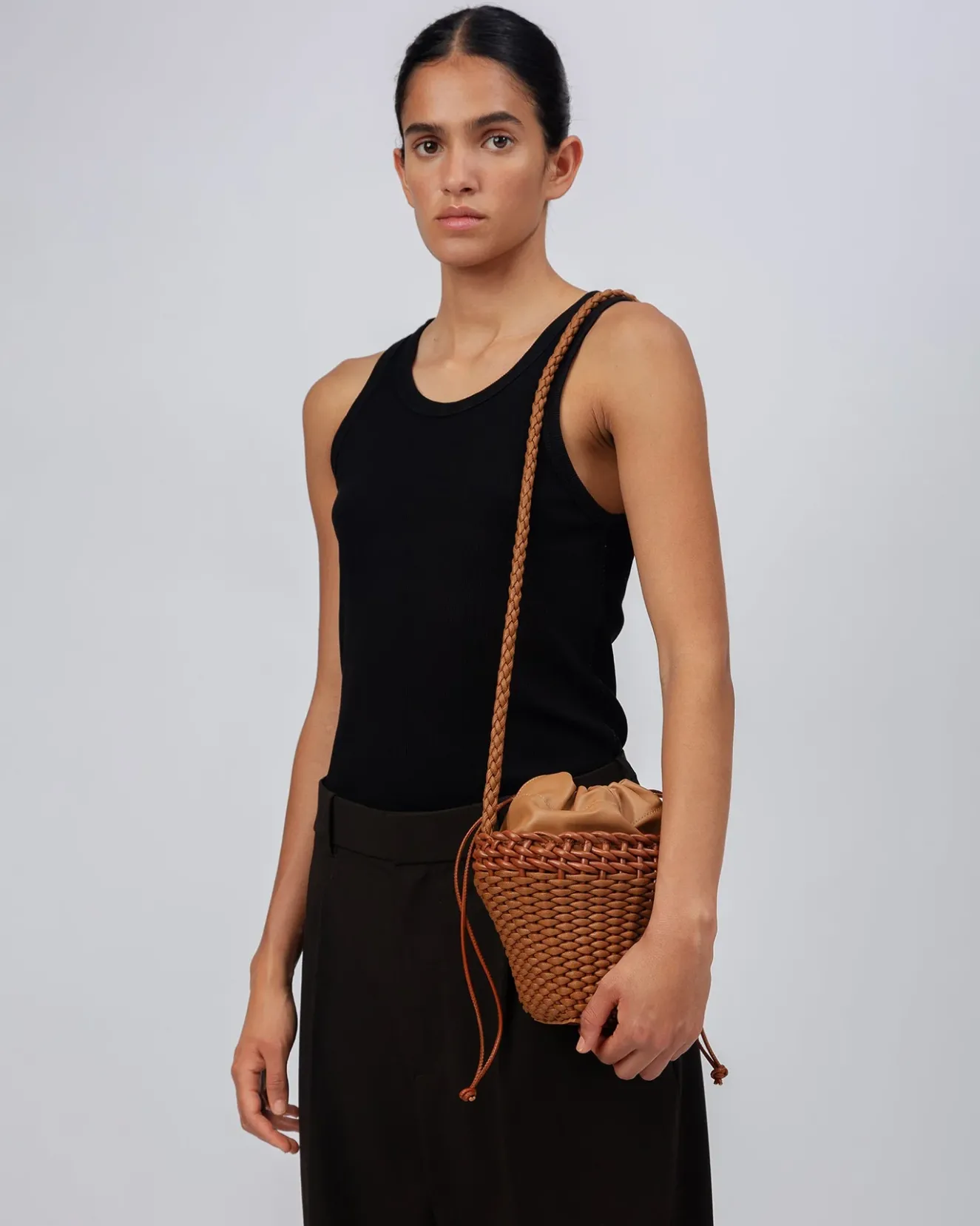 Hand-Braided Mini Crossbody Bag Crafted In Calf Leather And Waxed Cotton. Goat Leather Lining.Made In Spain By Uniquely Talented Artisans, Celebrating Excellence In Craftsmanship.