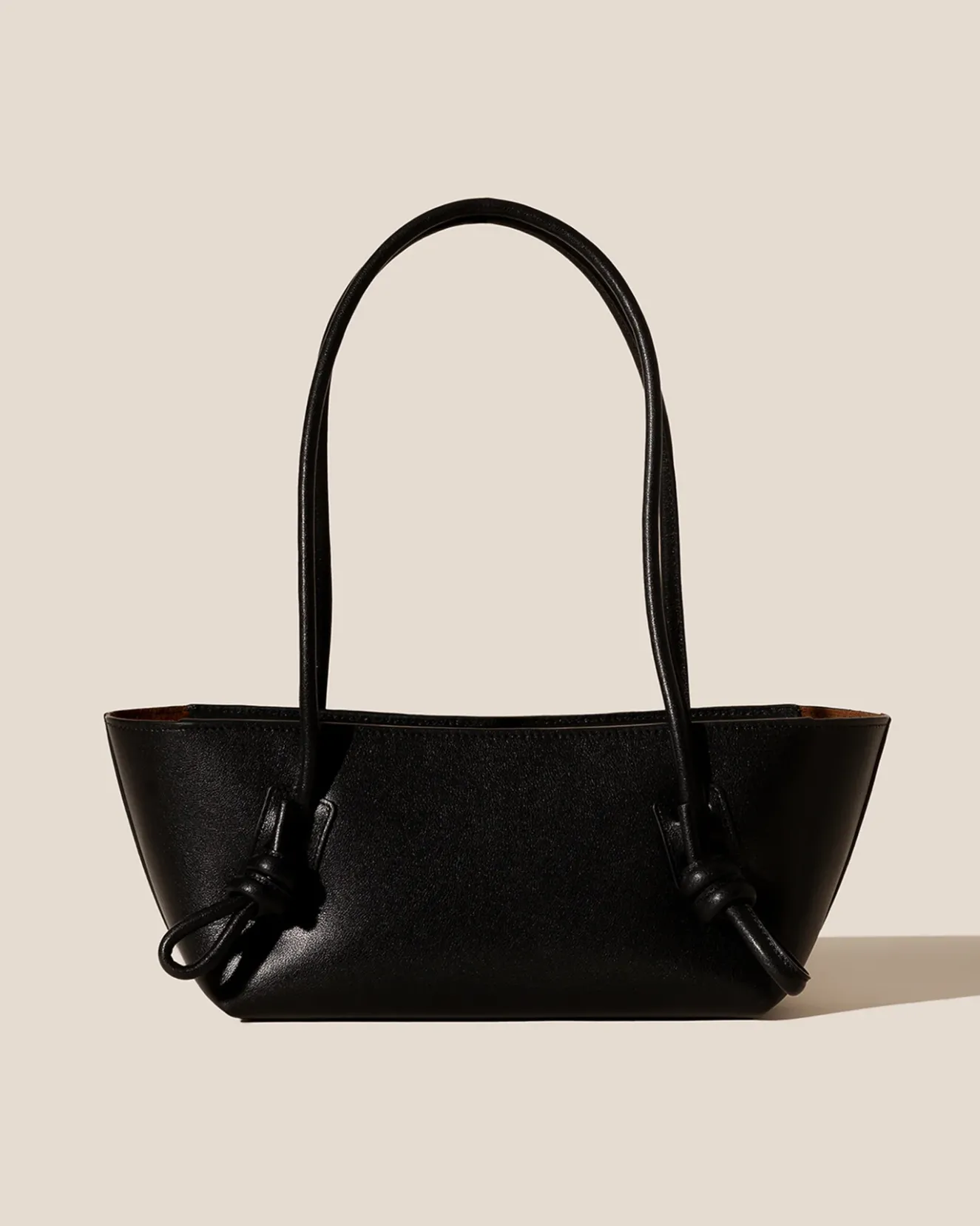 Baguette Shoulder Bag With Knotted Handle Detail, Crafted In Polished Italian Calf Leather And Lined With Calf Suede.Handmade In Spain By Uniquely Talented Artisans, Celebrating Excellence In Craftsmanship.