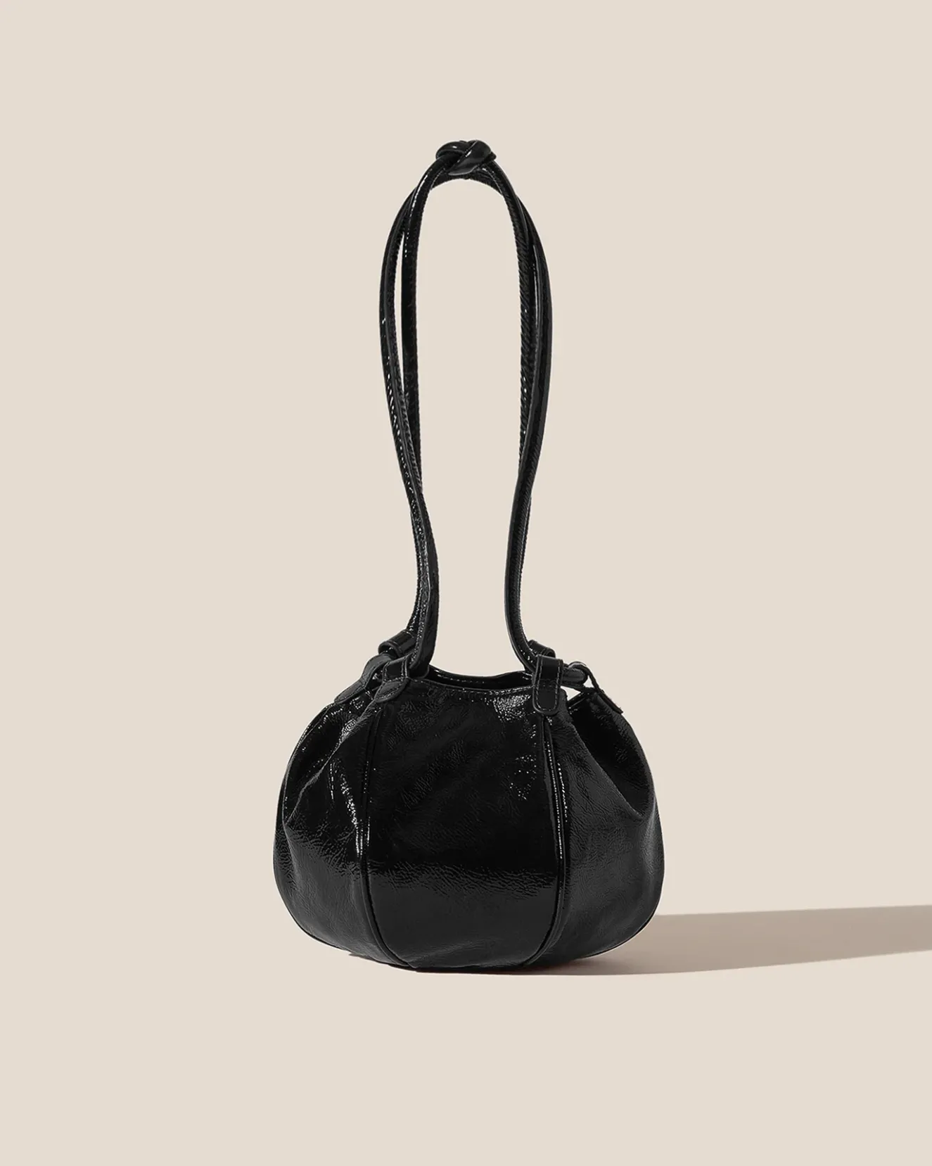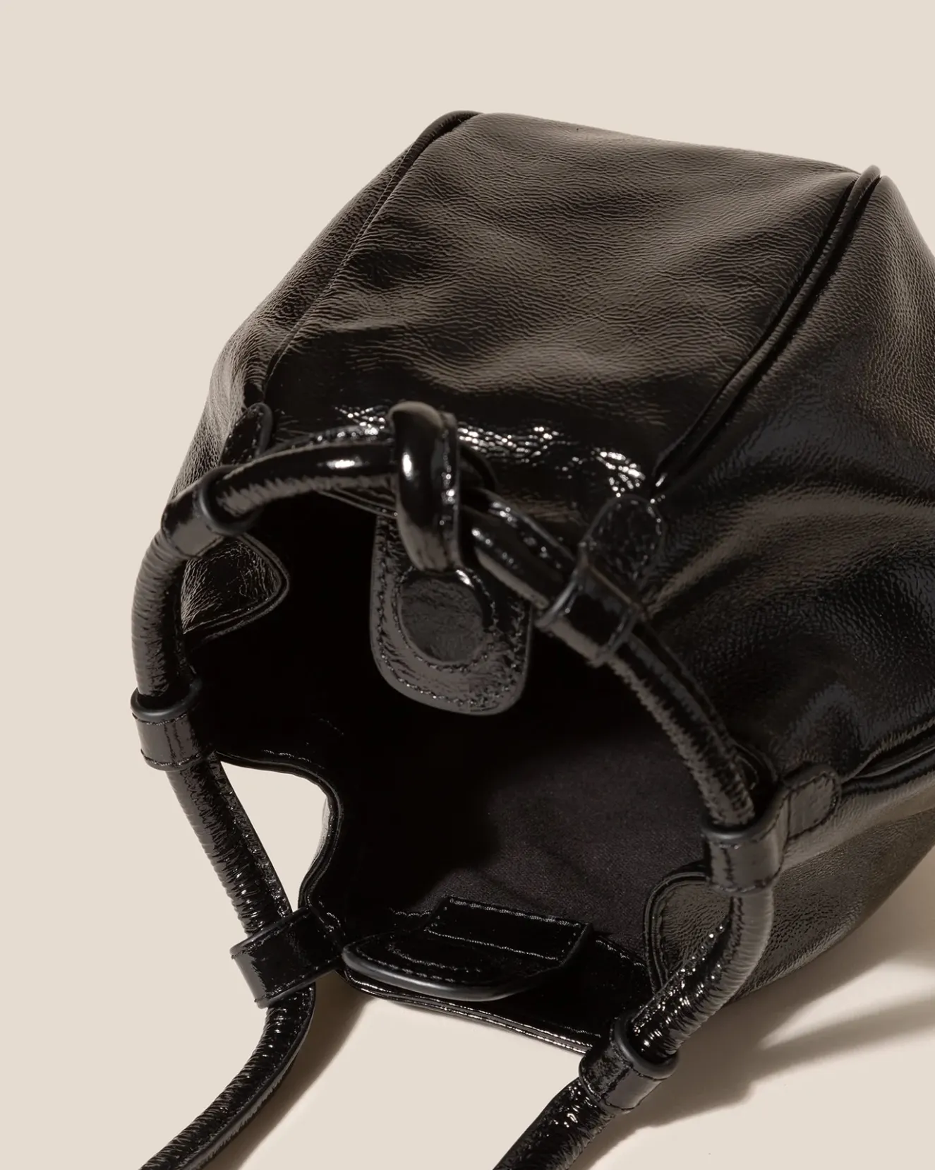 Balloon-Shaped Drawstring Crossbody/Tote Mini Bag Crafted In Crinkled Patent Italian Lambskin And Lined With Organic Cotton Canvas.It Can Be Worn As A Crossbody By Pulling The Strap To One Side, Or As As Tote By Pulling The Straps Evenly To Both Sides.Made In Spain By Uniquely Talented Artisans, Celebrating Excellence In Craftsmanship.