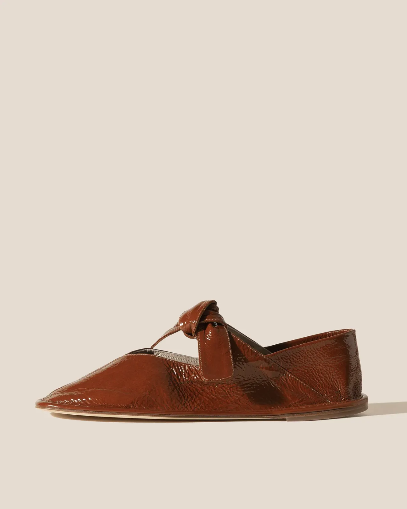 Square Toe Pump With Bow Detail, Crafted In Crinkled Glossy Lambskin.Handmade In Spain By Uniquely Talented Artisans, Celebrating Excellence In Craftsmanship.