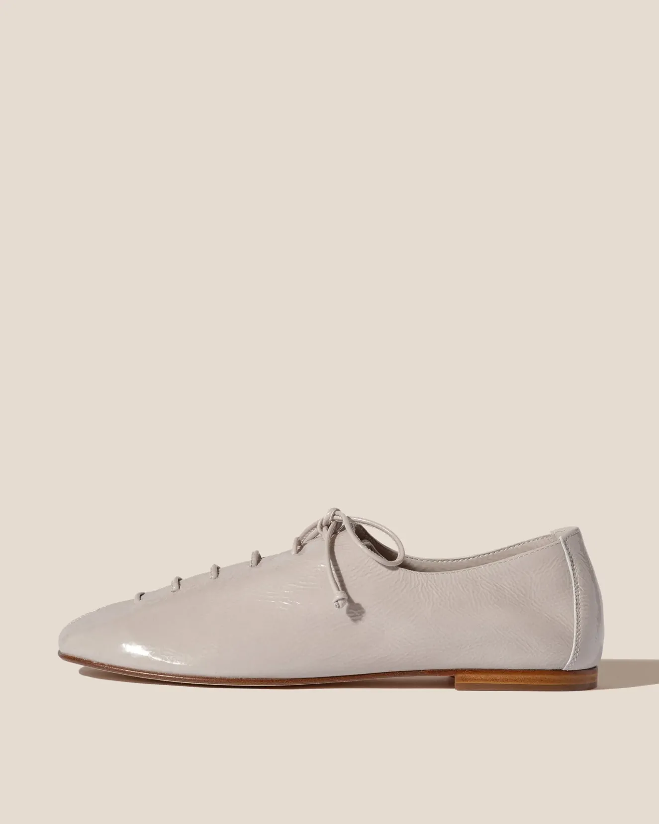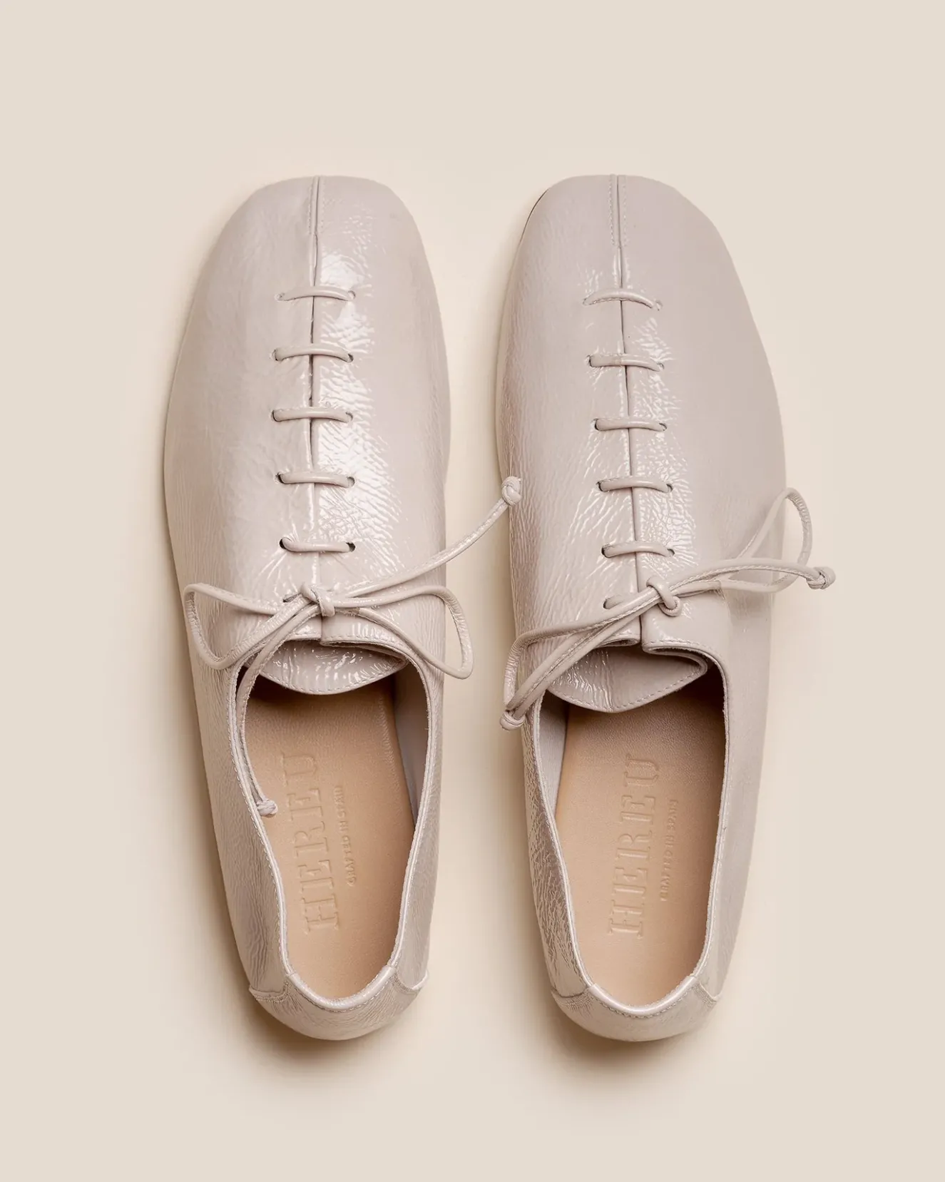 Flat Lace-Up Shoe With Bellows Tongue, Crafted In Unlined Italian Crinkled Glossy Lambskin.Made In Spain By Local Artisans, Celebrating Excellence In Craftsmanship.