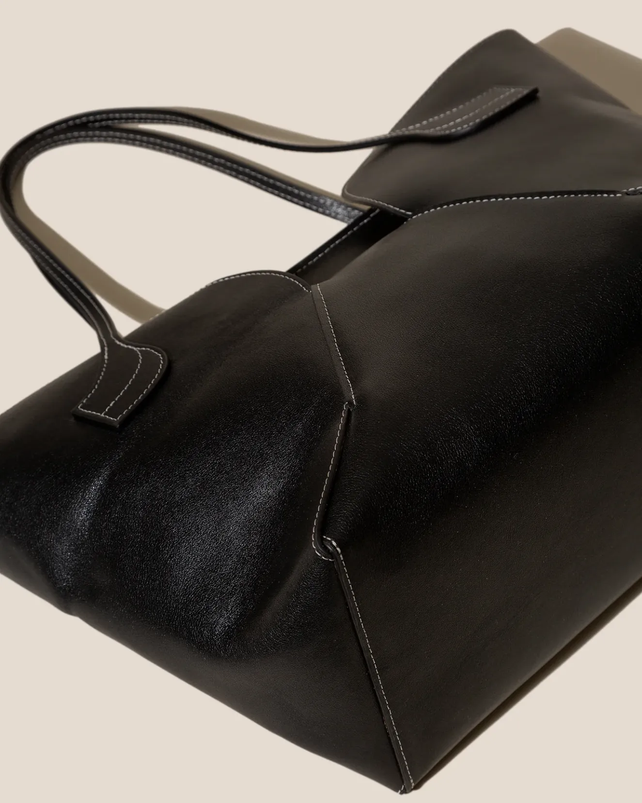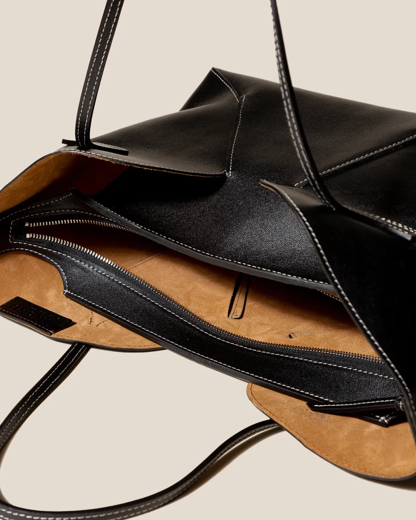 Tulip-Shaped Tote With Woven Detail Crafted In Shiny Polished Calf Leather.Made In Spain By Uniquely Talented Artisans, Celebrating Excellence In Craftsmanship.