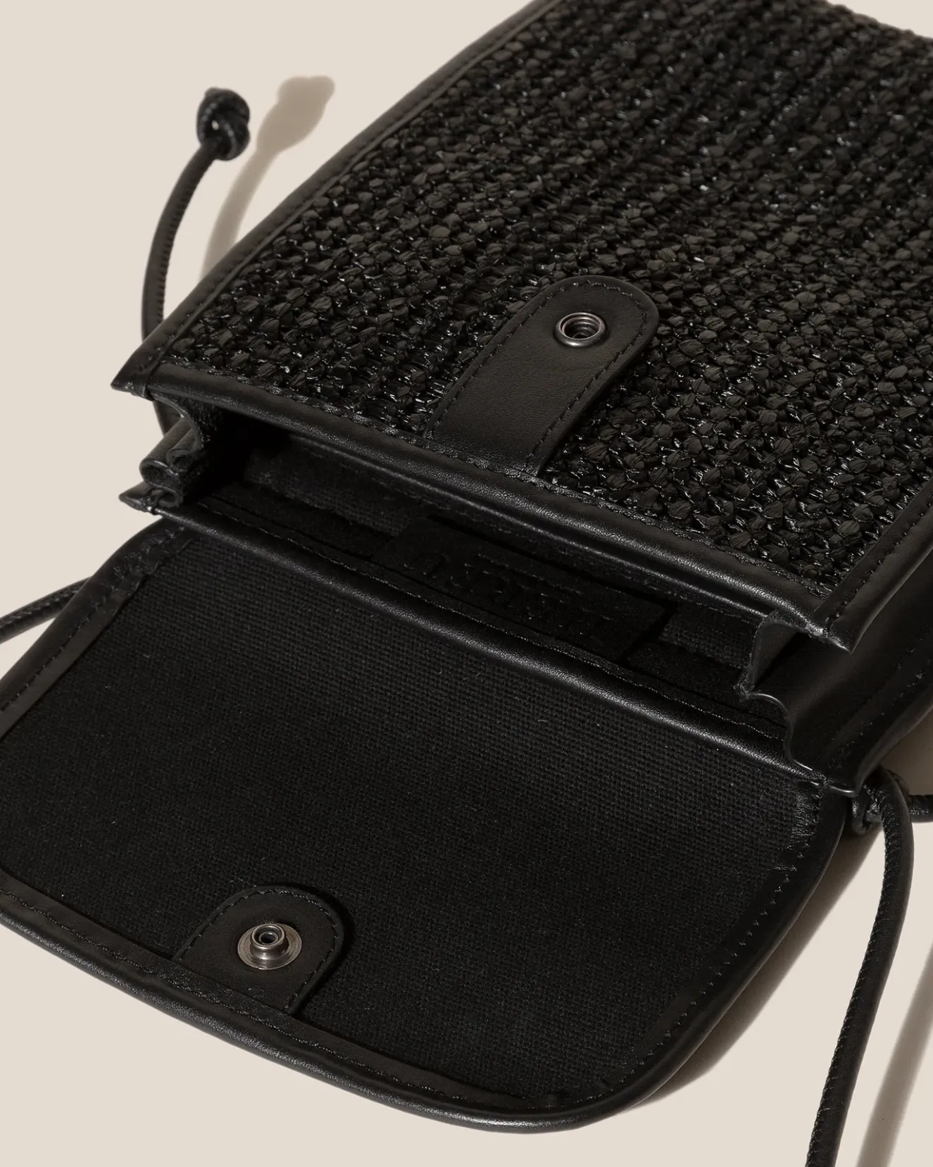 Leather Framed Woven Raffia Flat Square Crossbody. Crafted In Organic Cotton Canvas And Trimmed With Calf Leather.Made In Spain By Uniquely Talented Artisans, Celebrating Excellence In Craftsmanship.