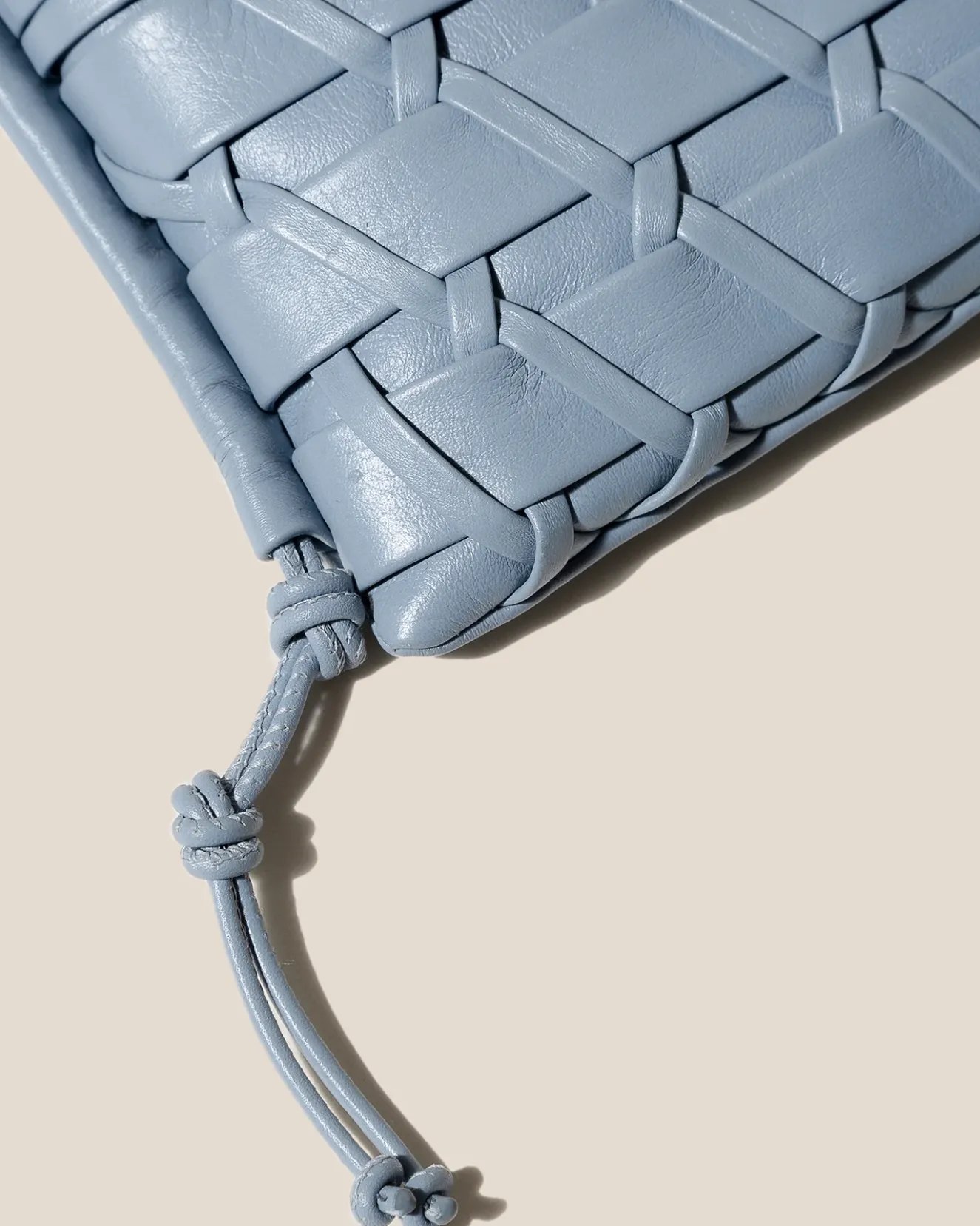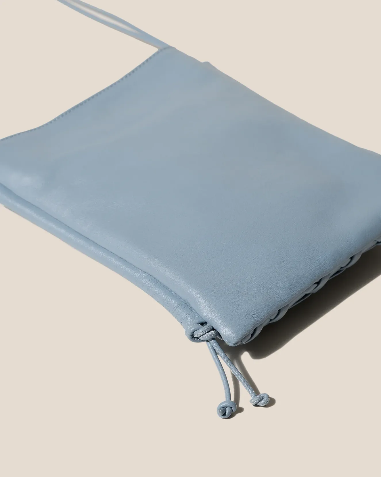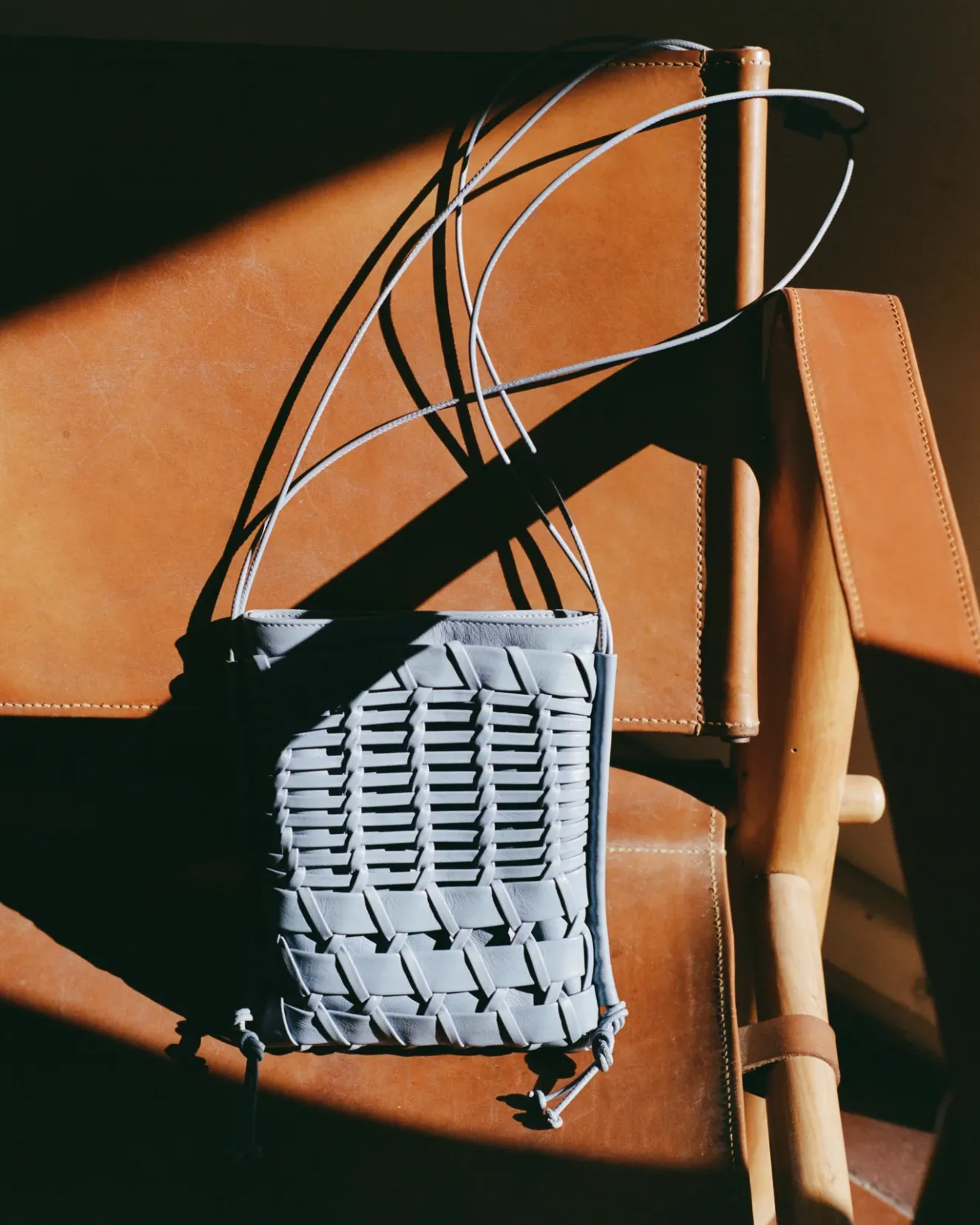 Flat Square Crossbody Bag Crafted In Soft Calf Leather, With A Handwoven Front Pocket.Made In Spain By Uniquely Talented Artisans, Celebrating Excellence In Craftsmanship.
