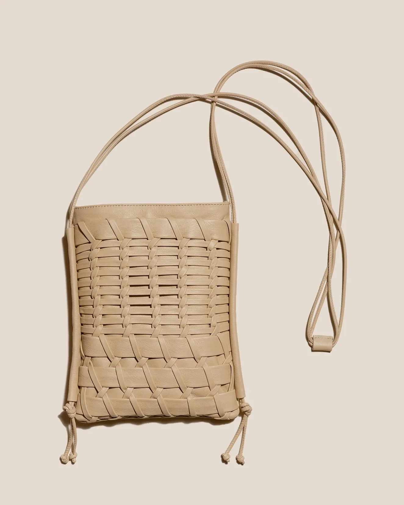 Flat Square Crossbody Bag Crafted In Soft Calf Leather, With A Handwoven Front Pocket.Made In Spain By Uniquely Talented Artisans, Celebrating Excellence In Craftsmanship.