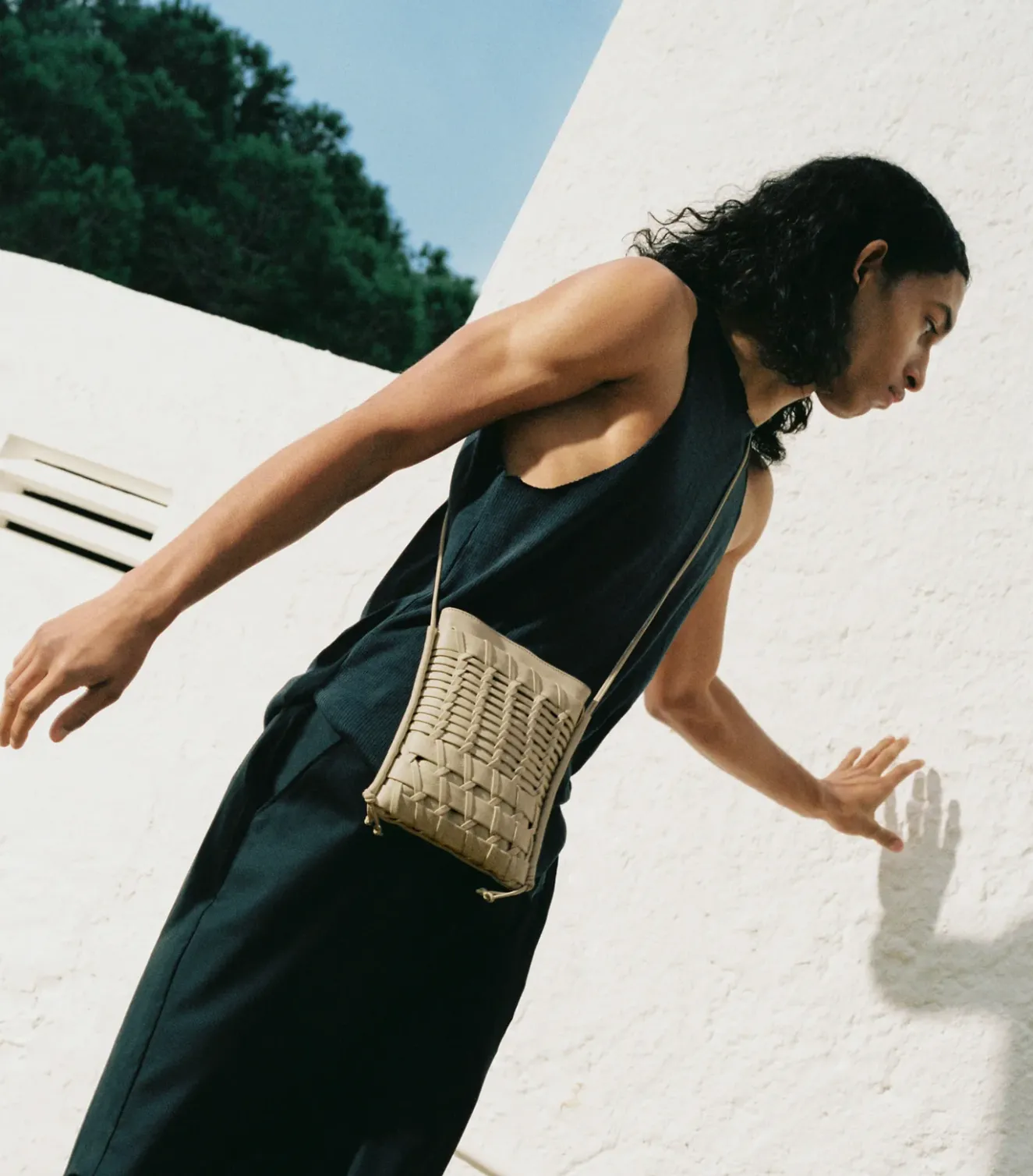 Flat Square Crossbody Bag Crafted In Soft Calf Leather, With A Handwoven Front Pocket.Made In Spain By Uniquely Talented Artisans, Celebrating Excellence In Craftsmanship.