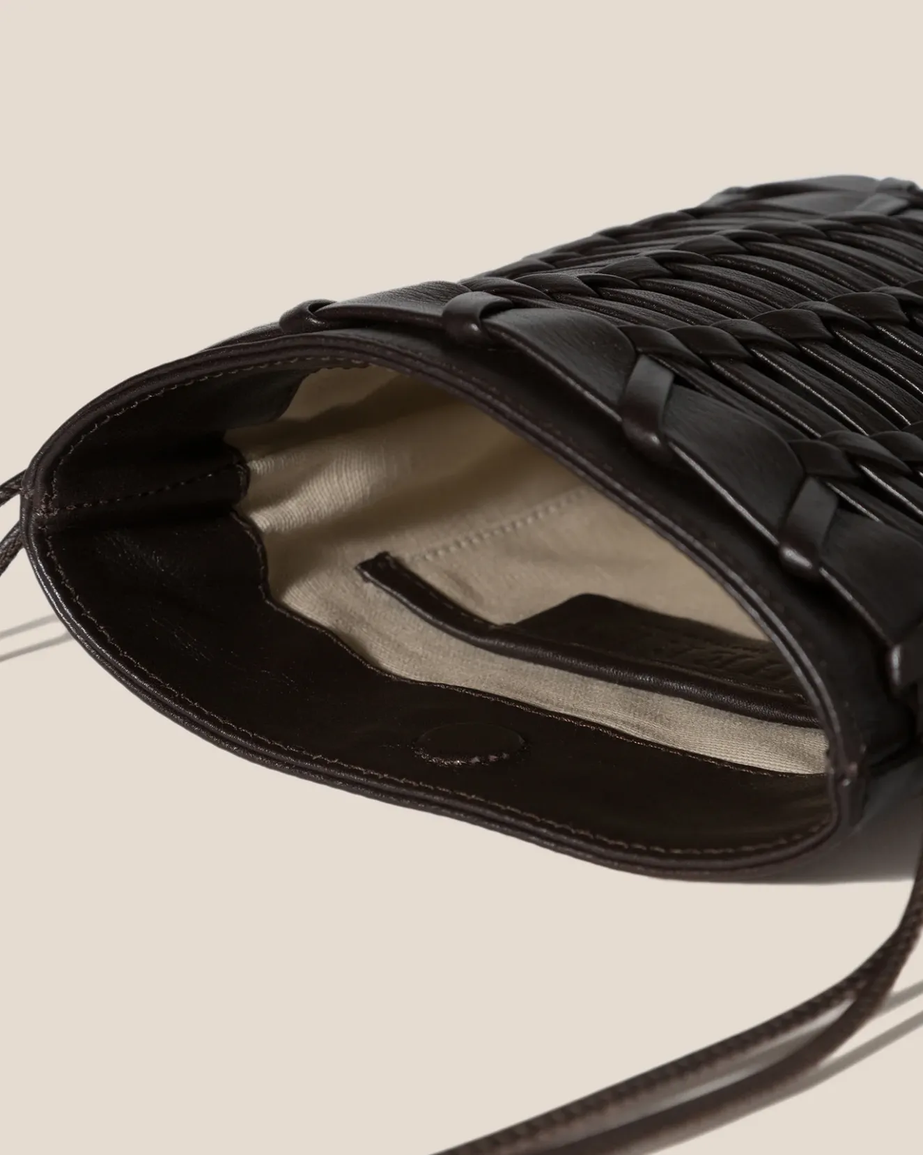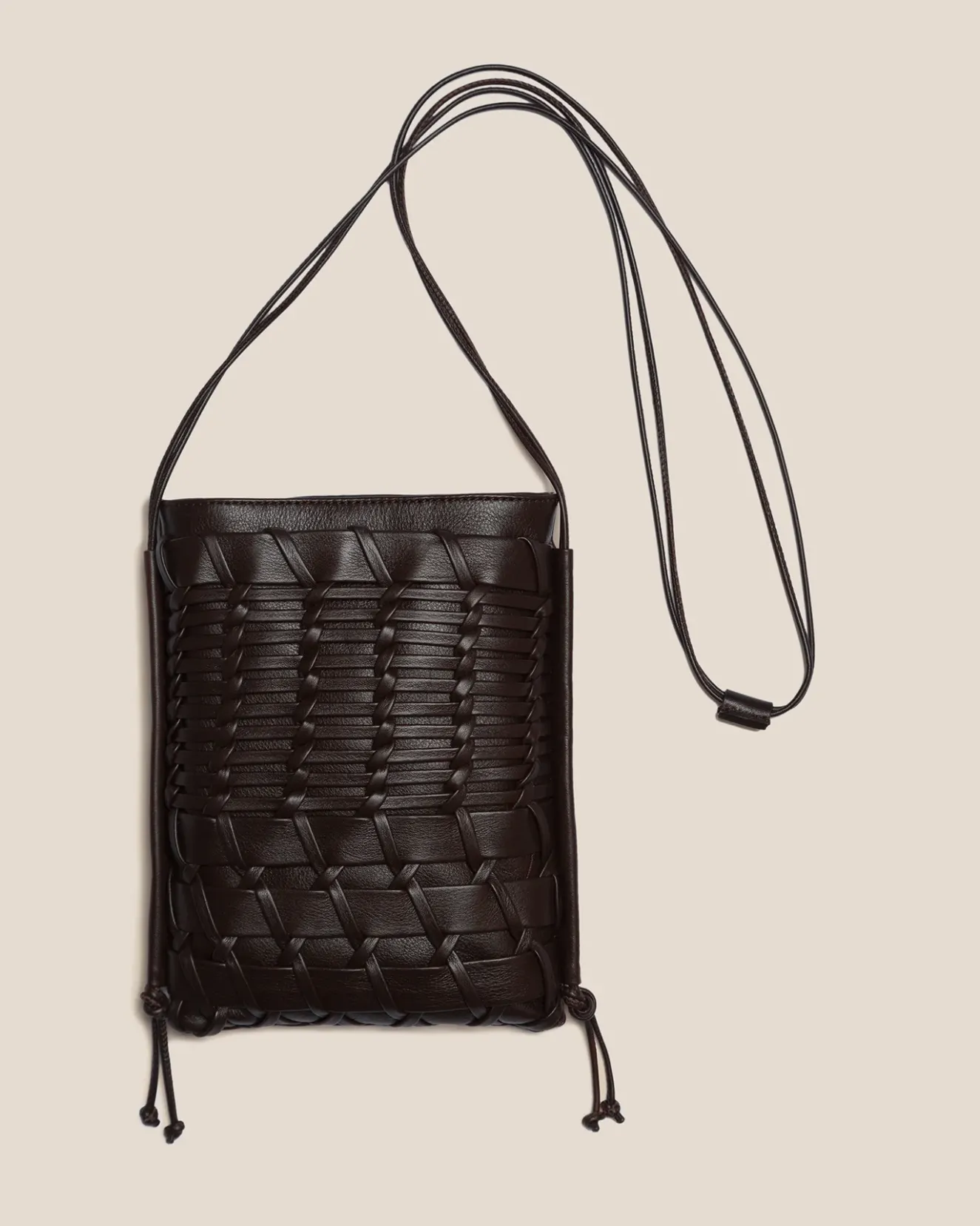 Flat Square Crossbody Bag Crafted In Soft Calf Leather, With A Handwoven Front Pocket.Made In Spain By Uniquely Talented Artisans, Celebrating Excellence In Craftsmanship.