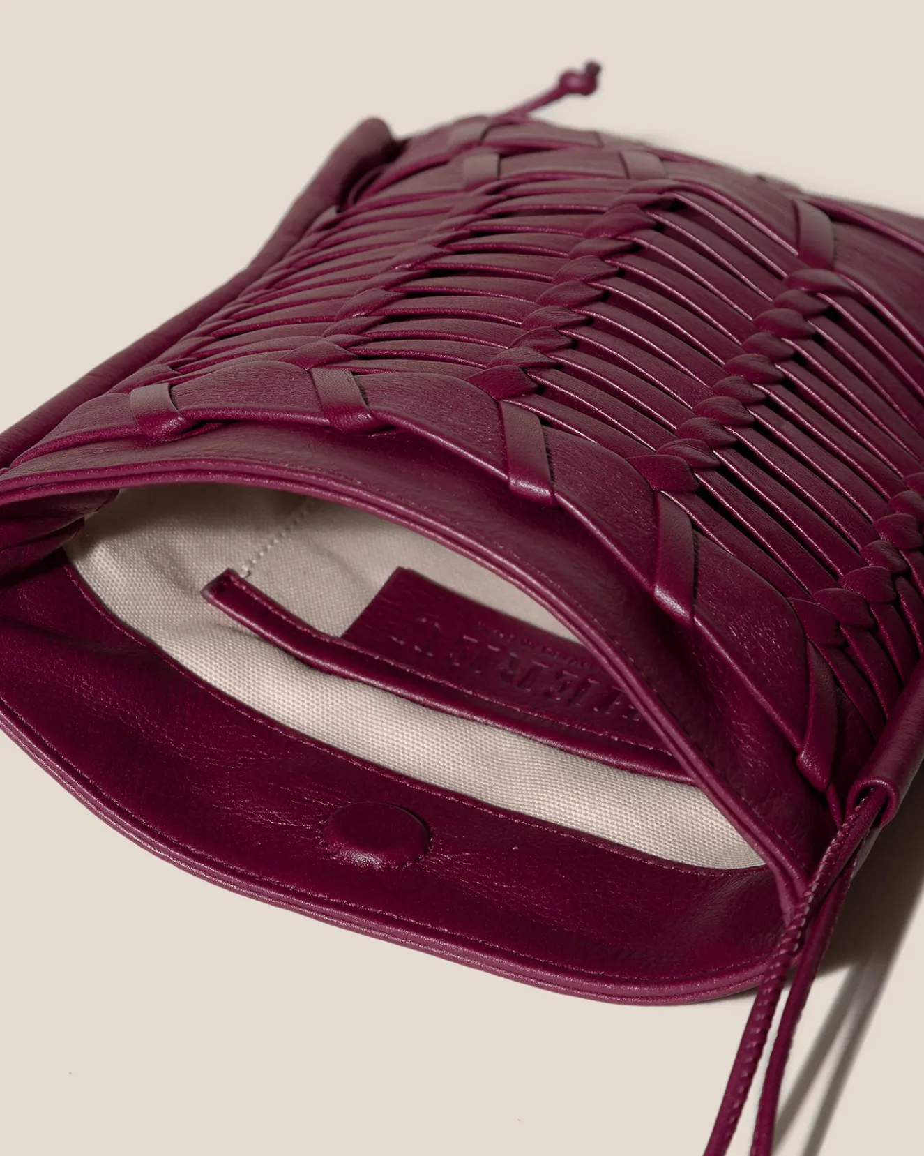 Flat Square Crossbody Bag Crafted In Soft Calf Leather, With A Handwoven Front Pocket.Made In Spain By Uniquely Talented Artisans, Celebrating Excellence In Craftsmanship.