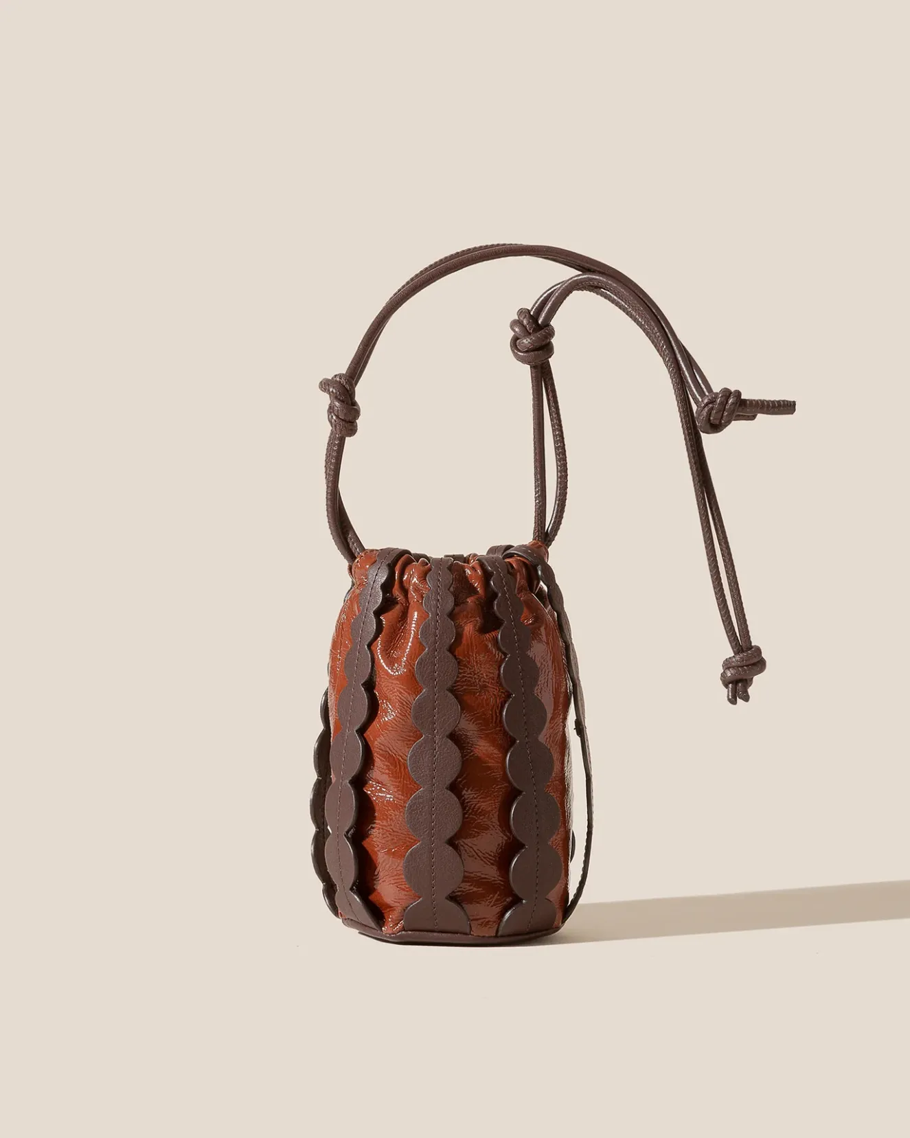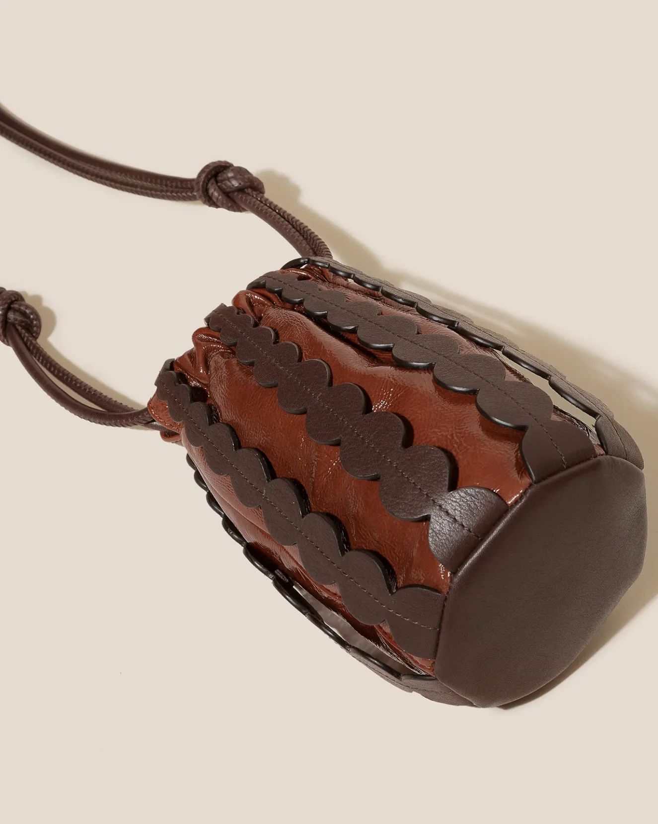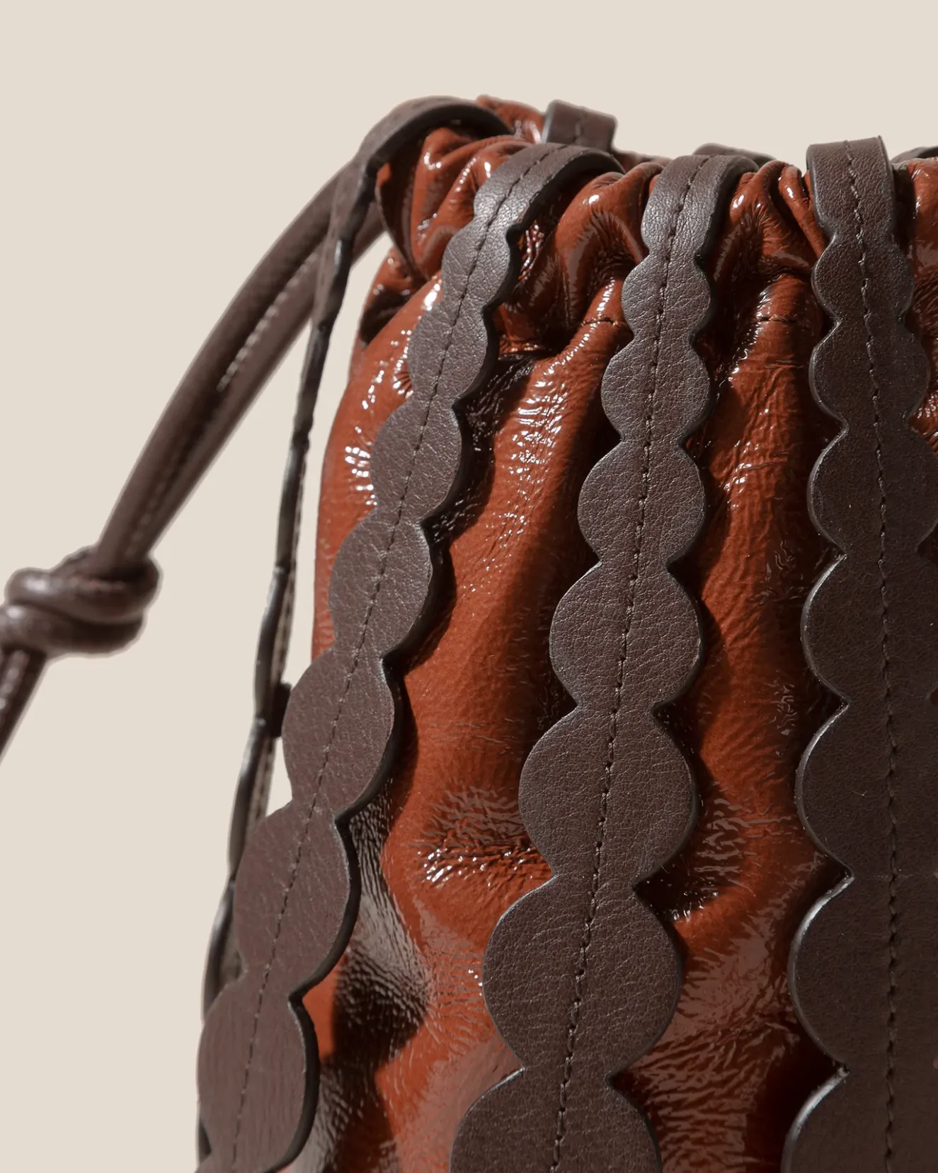 Mini Drawstring Tote Crafted In Crinkled Glossy Lambskin And Smooth Calf Letaher.Made In Spain By Uniquely Talented Artisans, Celebrating Excellence In Craftsmanship.
