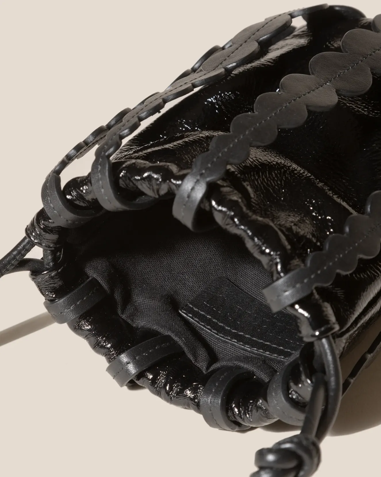 Mini Drawstring Tote Crafted In Crinkled Glossy Lambskin And Smooth Calf Letaher.Made In Spain By Uniquely Talented Artisans, Celebrating Excellence In Craftsmanship.