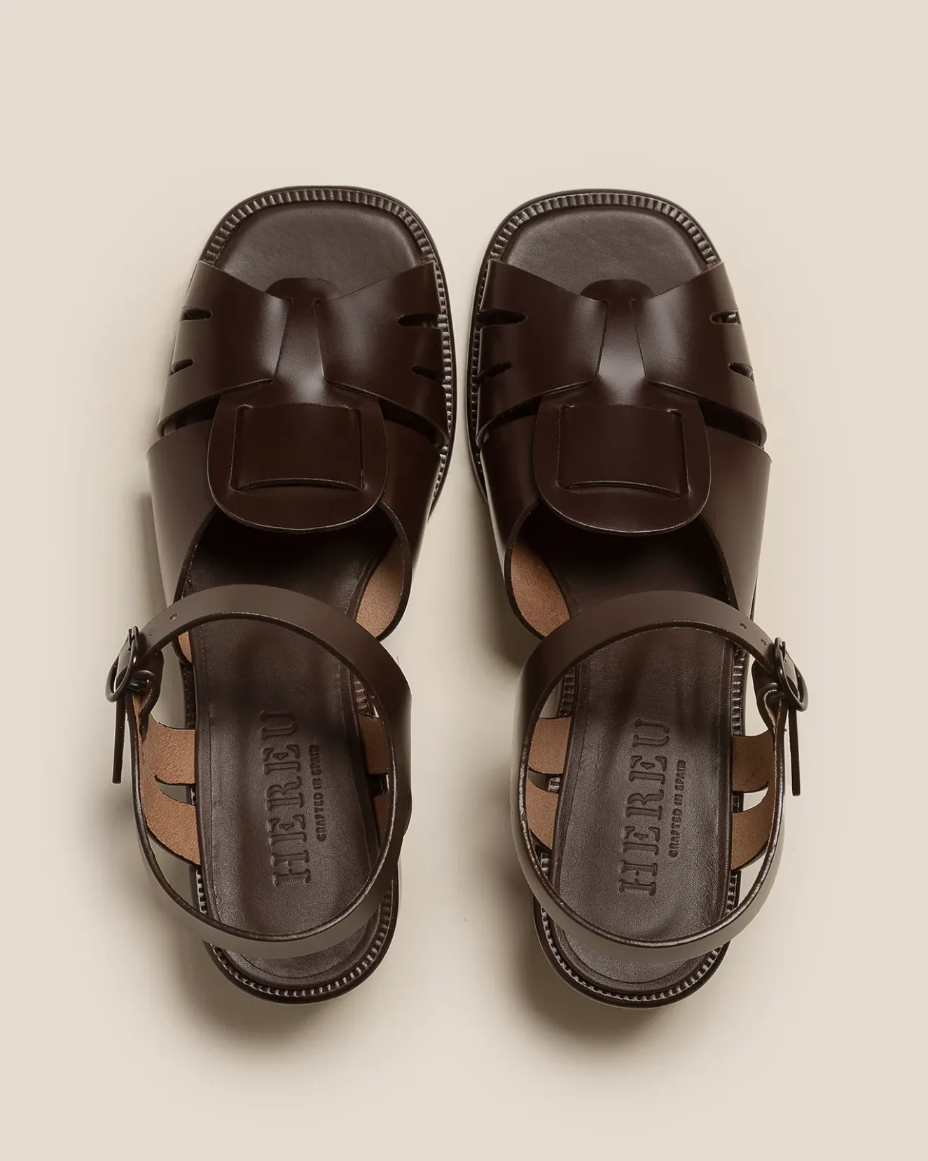 Squared Open-Toe Fisherman Sandal With Cut Out Front Detail, Crafted In Structured Calf Leather.Made In Spain By Uniquely Talented Artisans, Celebrating Excellence In Craftsmanship.