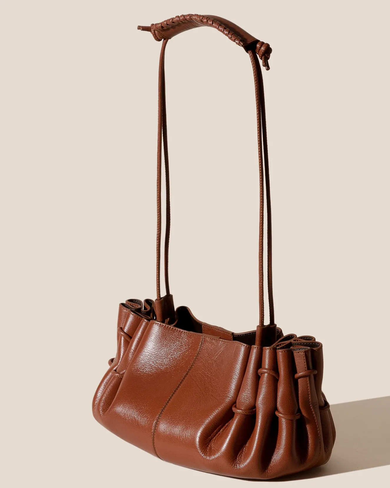 Pleated Hand/Shoulder Bag Crafted In Supple Shiny Lambskin.Made In Spain By Uniquely Talented Artisans, Celebrating Excellence In Craftsmanship.