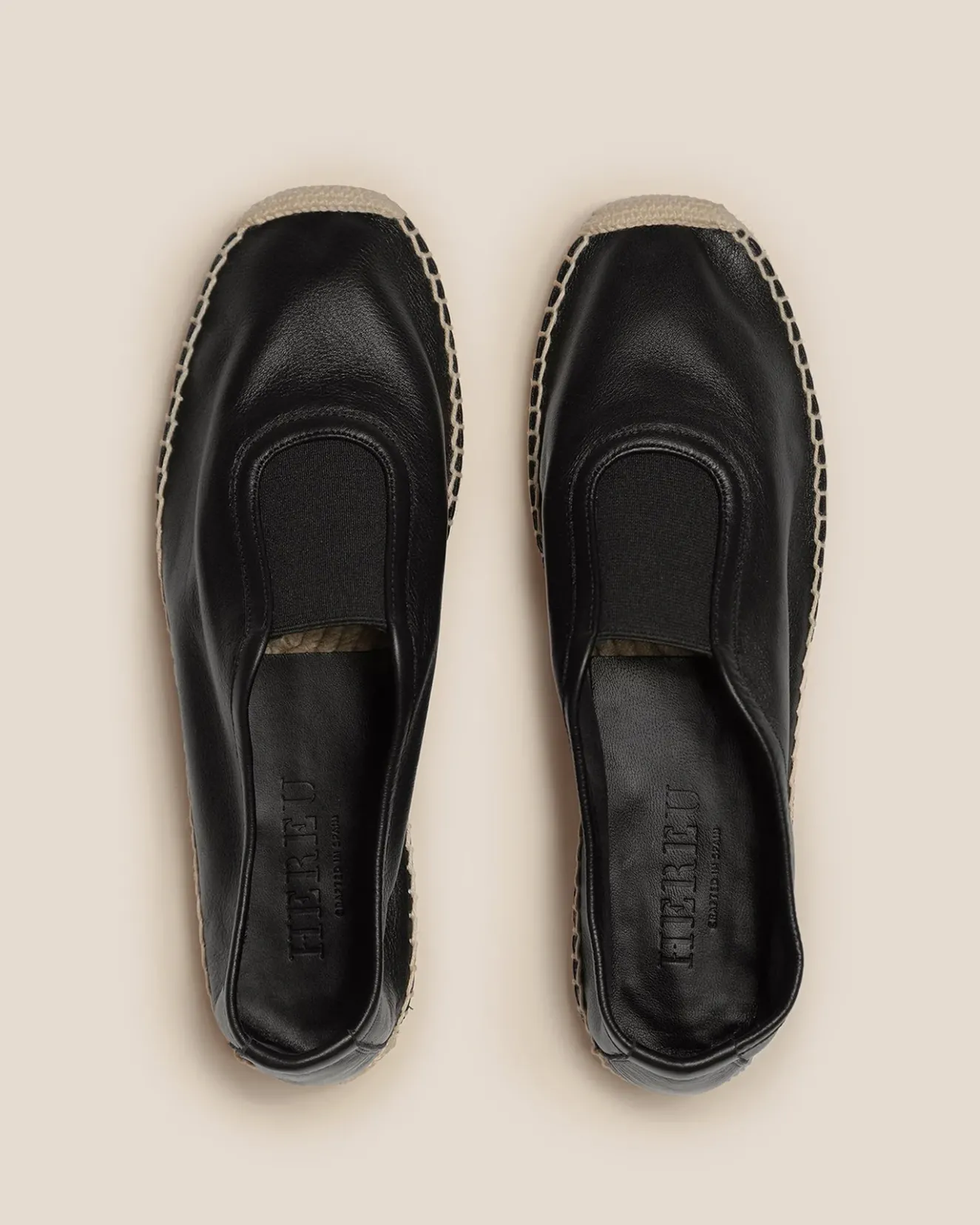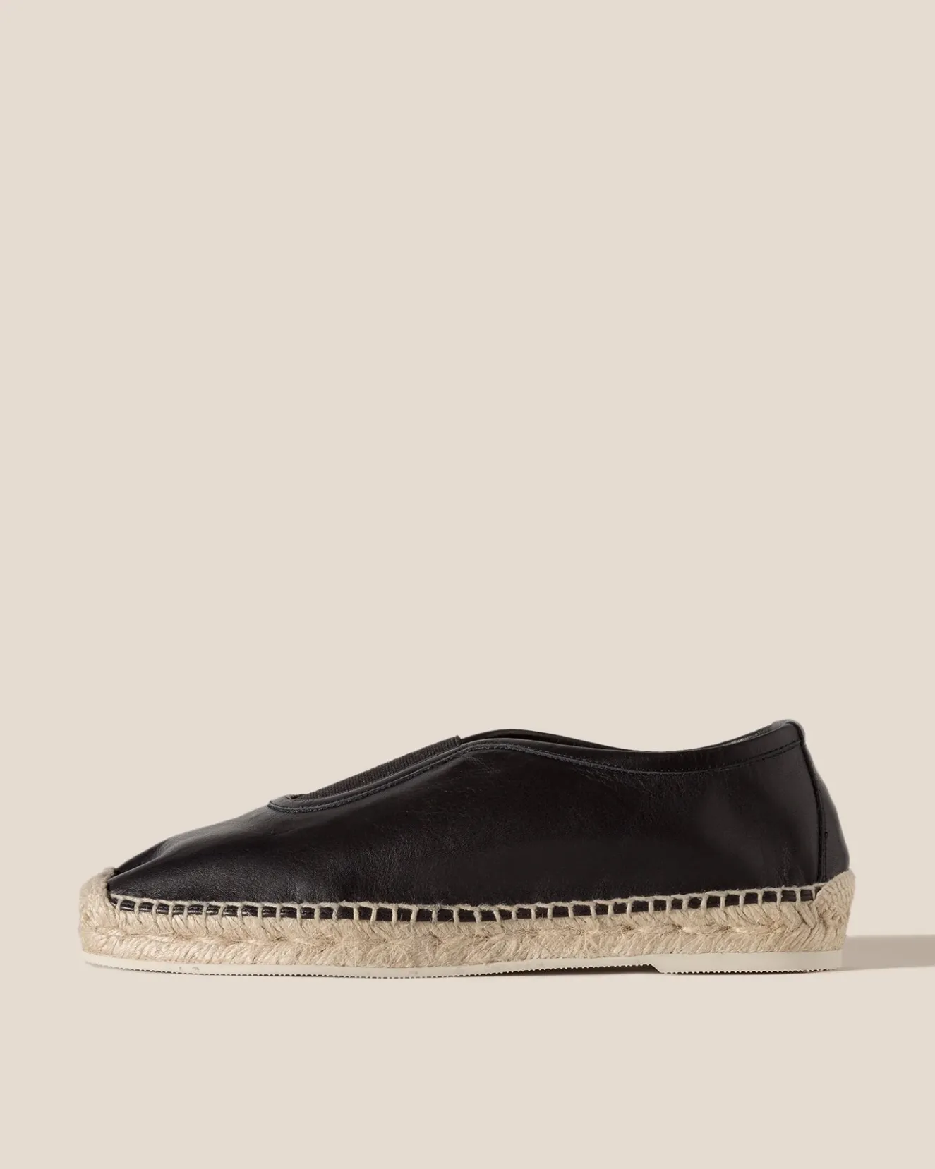 Black Slip-On Espadrille, Crafted In Unlined Calf Leather With Elasticated Top Line.Made In Alicante, Spain, By Local Artisans, Celebrating Excellence In Craftsmanship.