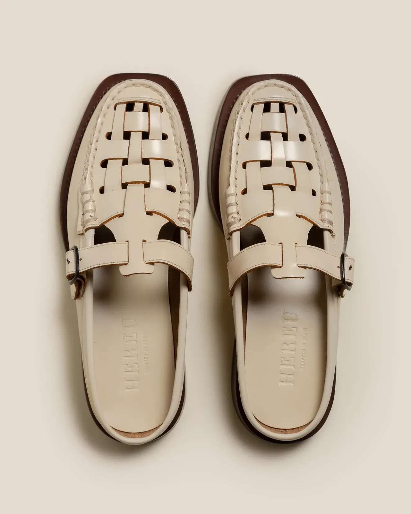 Woven T-Bar Mule Loafer Crafted In Spanish Structured Calf Leather.Made In Spain By Uniquely Talented Artisans, Celebrating Excellence In Craftsmanship.