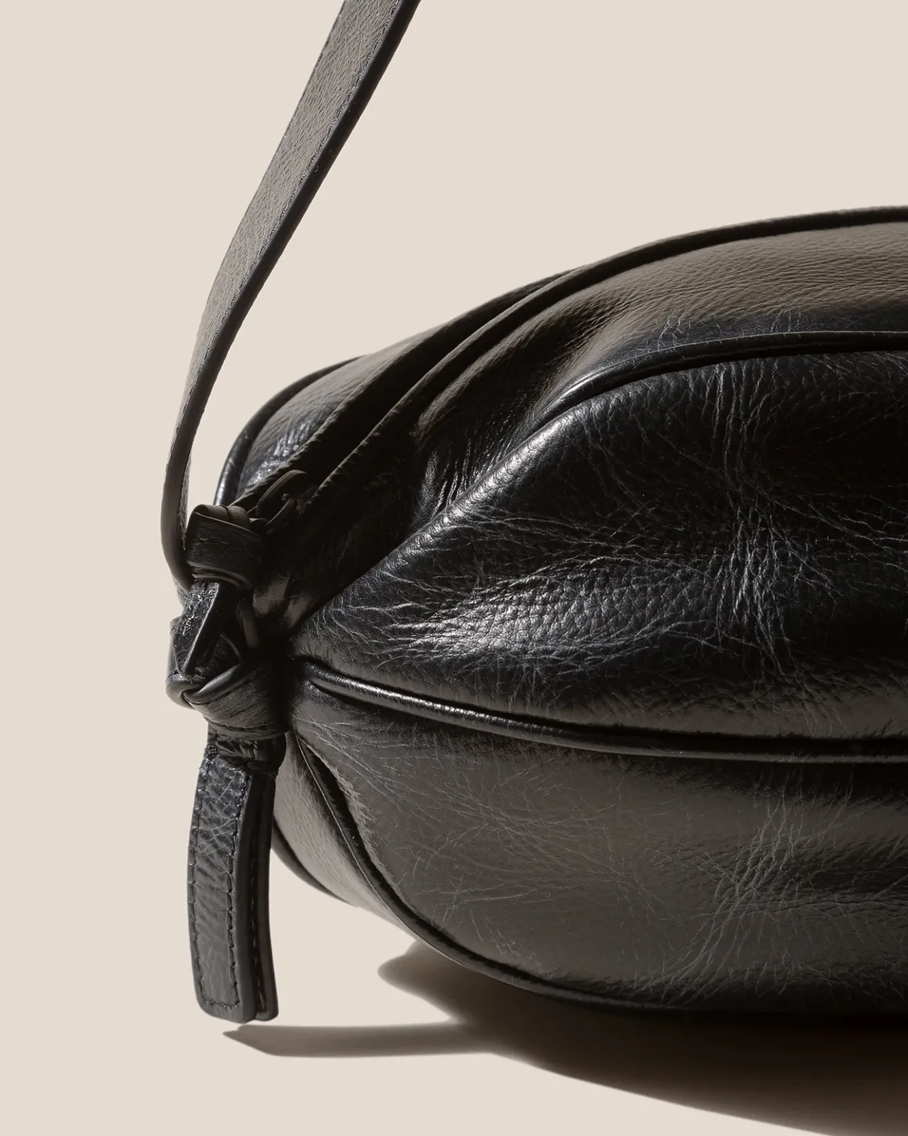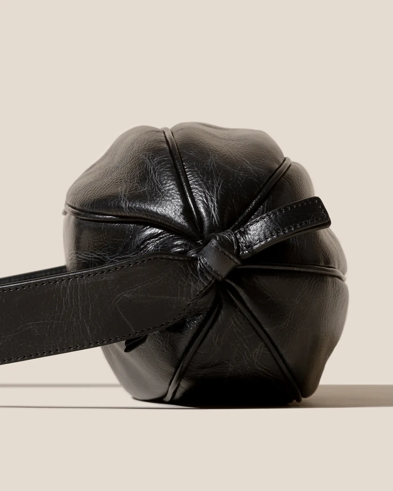 Large Elongated Ball-Shape Crossbody Bag With Knotted Side Details. Crafted In Distressed Calf Leather And Lined With Organic Cotton Canvas.Made In Spain By Uniquely Talented Artisans, Celebrating Excellence In Craftsmanship.