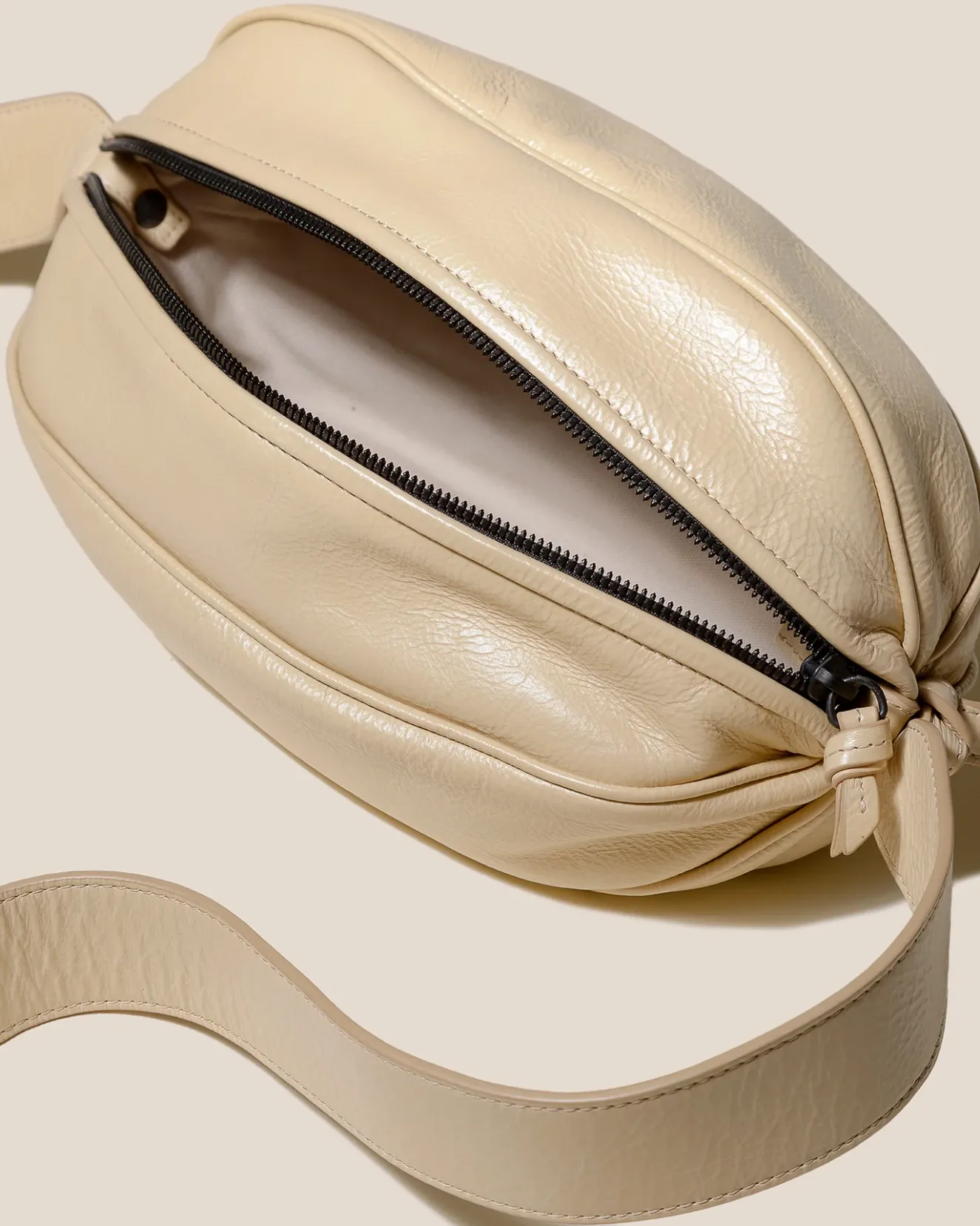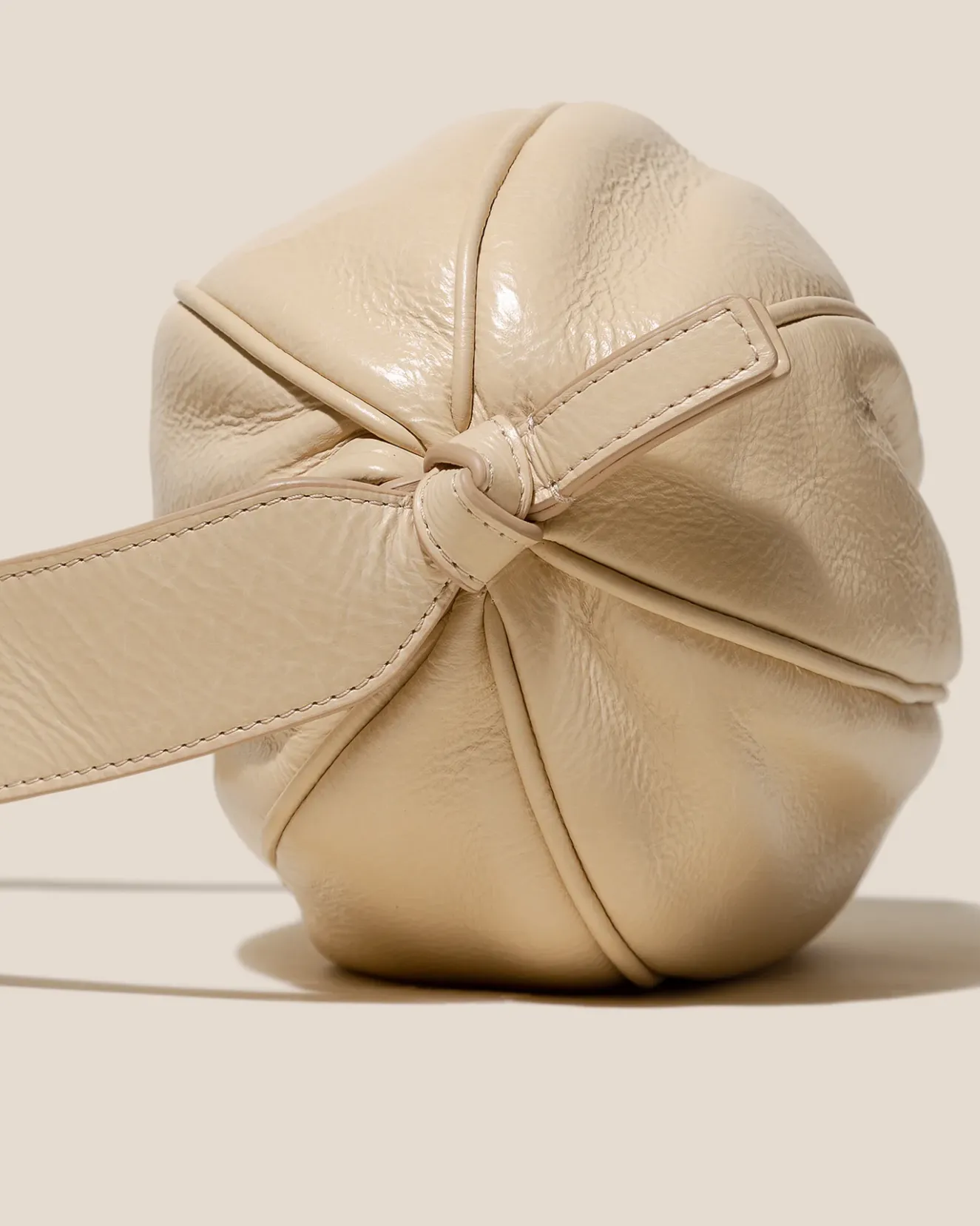 Large Elongated Ball-Shape Crossbody Bag With Knotted Side Details. Crafted In Distressed Calf Leather And Lined With Organic Cotton Canvas.Made In Spain By Uniquely Talented Artisans, Celebrating Excellence In Craftsmanship.