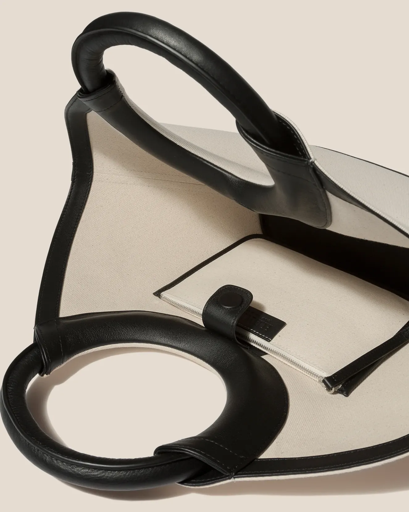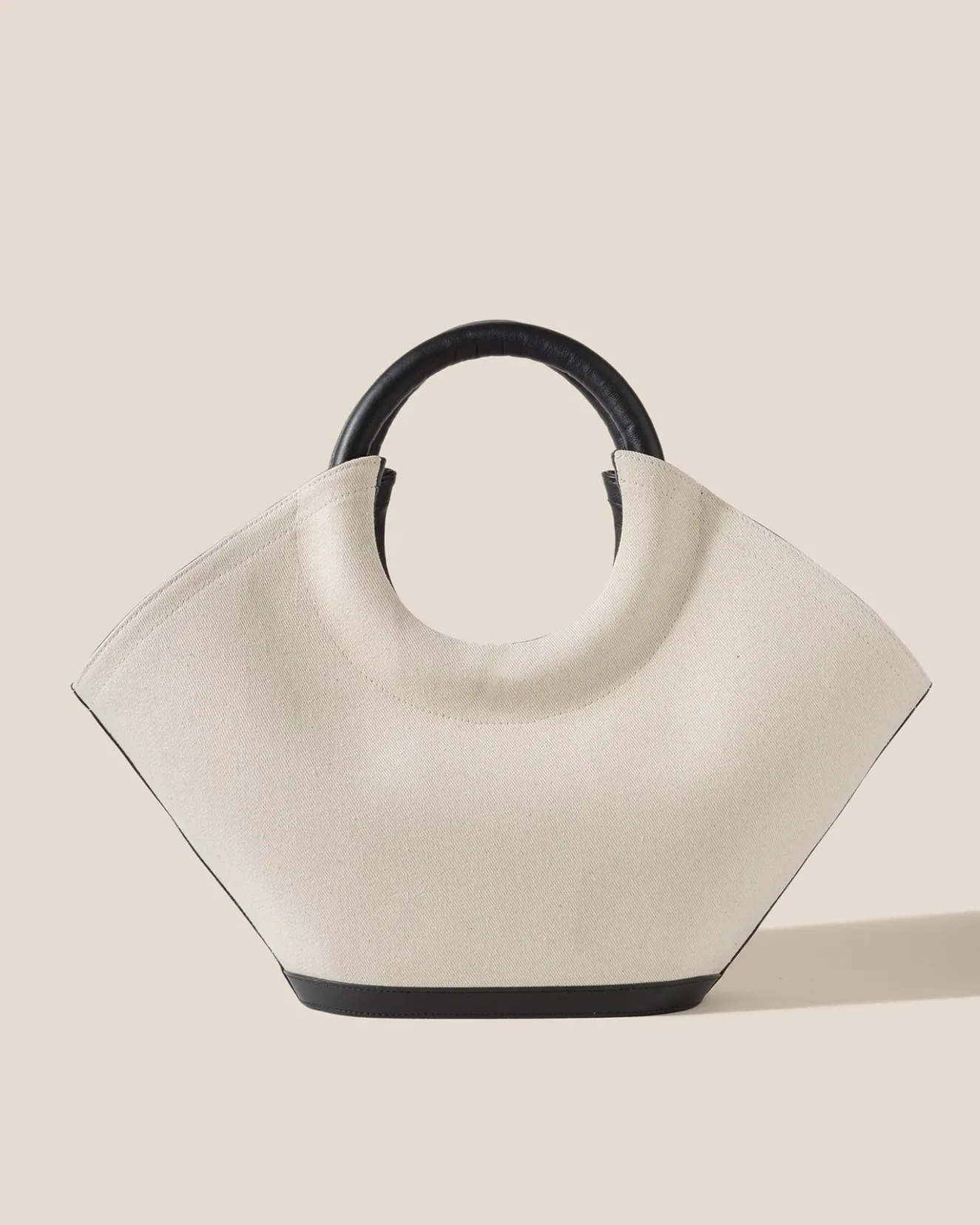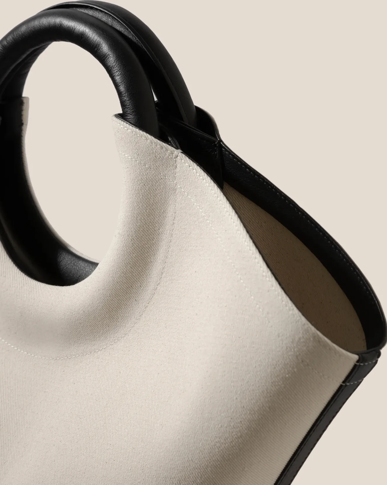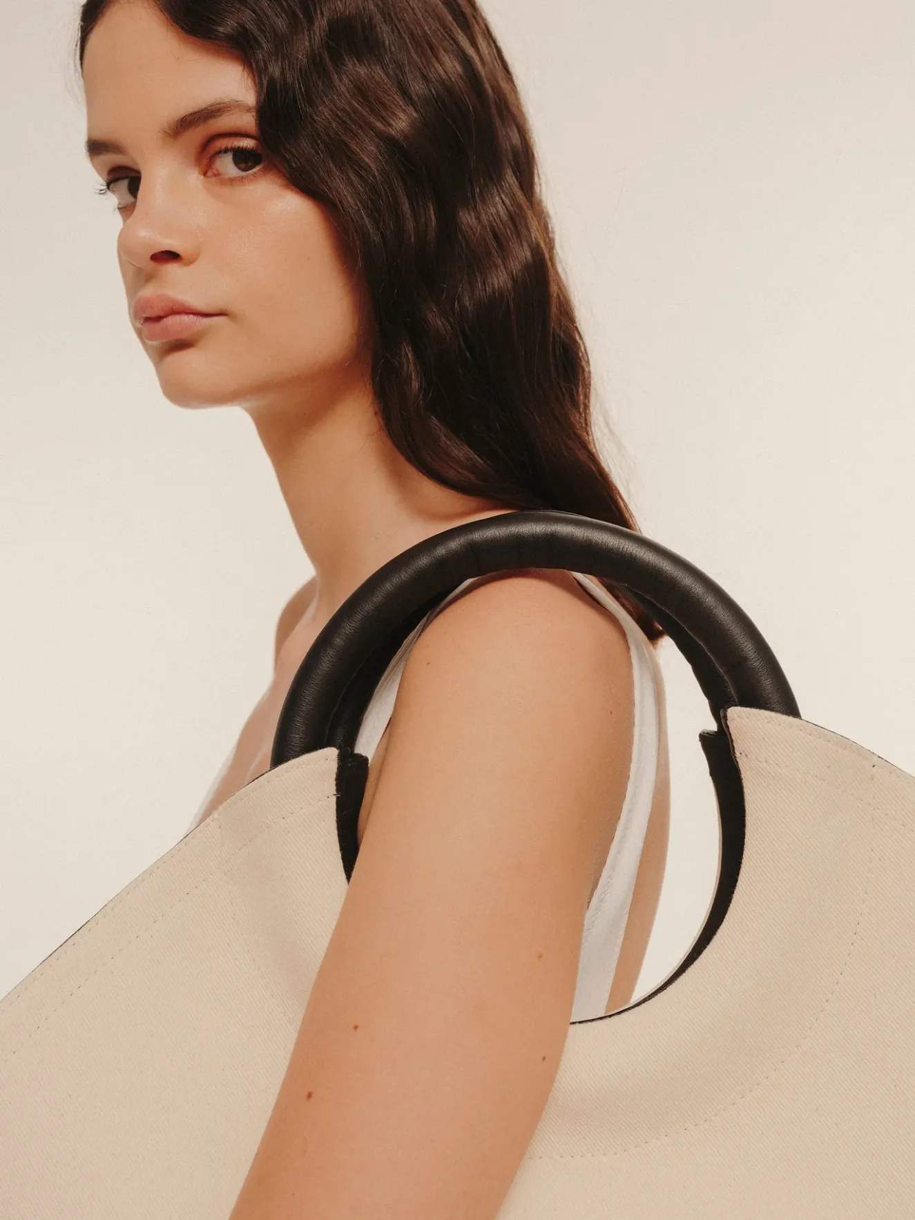 Canvas Tote With Rigid Round Leather Handles Crafted In Heavy Cotton Twill And Trimmed With Calf Leather And Natural Cotton Lining.Handmade In Spain By Uniquely Talented Artisans, Celebrating Excellence In Craftsmanship.
