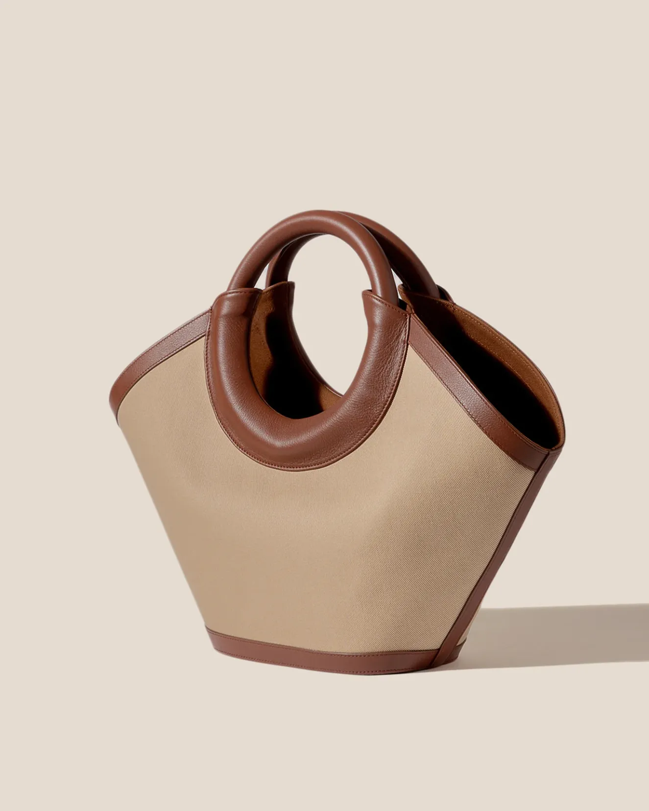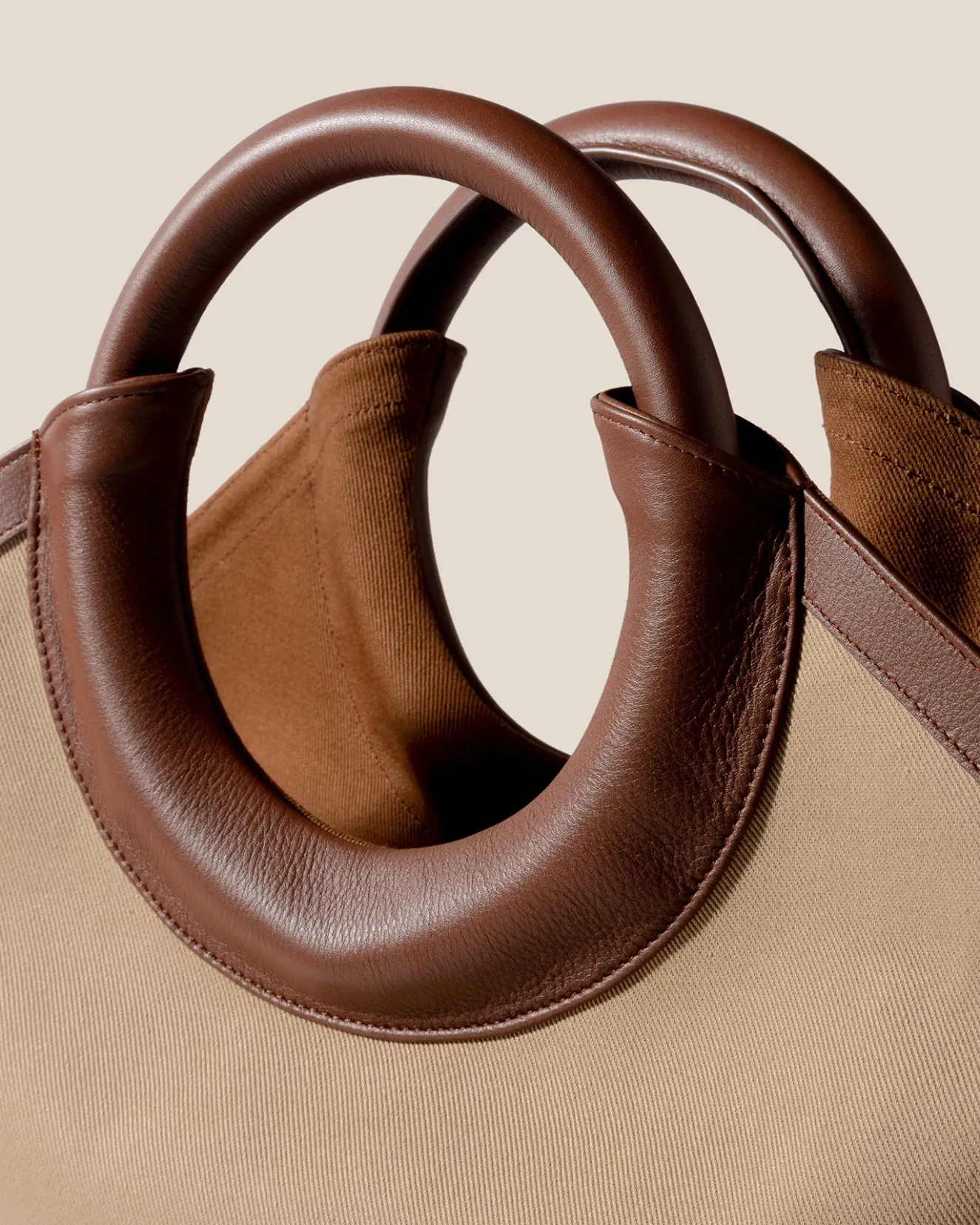 Canvas Tote With Round Leather Handle Crafted In Heavy Cotton Twill And Trimmed With Calf Leather And Cotton Lining.Made In Spain, By Local Artisans, Celebrating Excellence In Craftsmanship.