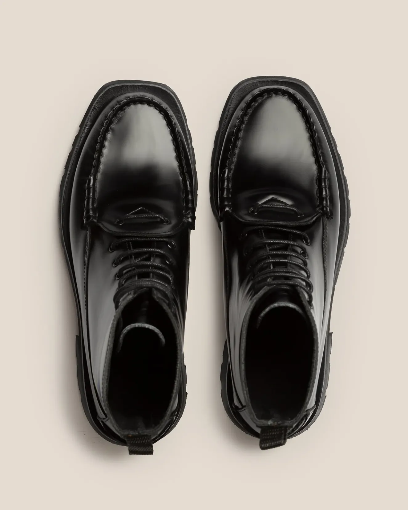 Tread Sole Lace-Up Loafer Boot Crafted In Spanish Full-Grain Calf Leather. The Upper Has Been Hand Sewn Using The Traditional Moccasin Construction.Made In Spain By Local Artisans, Celebrating Excellence In Craftsmanship.
