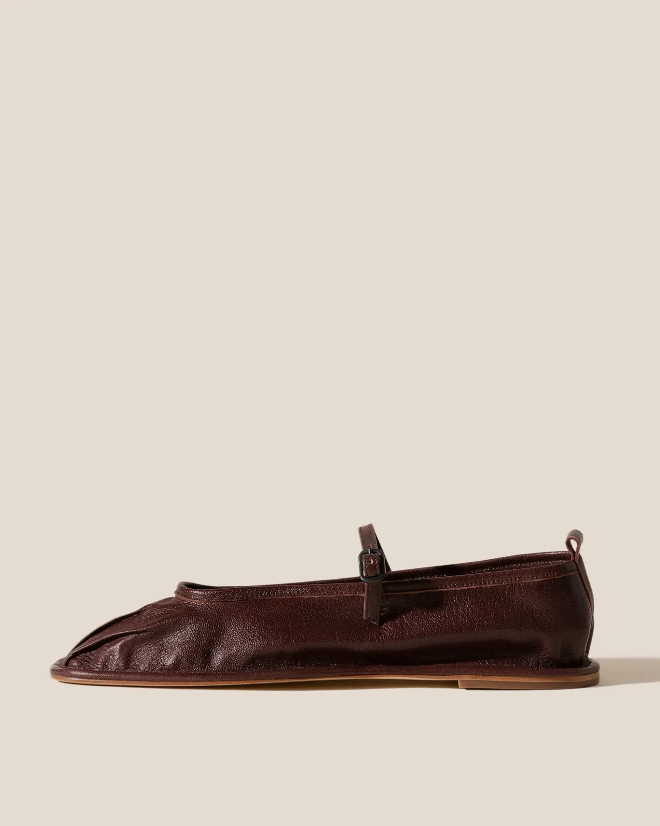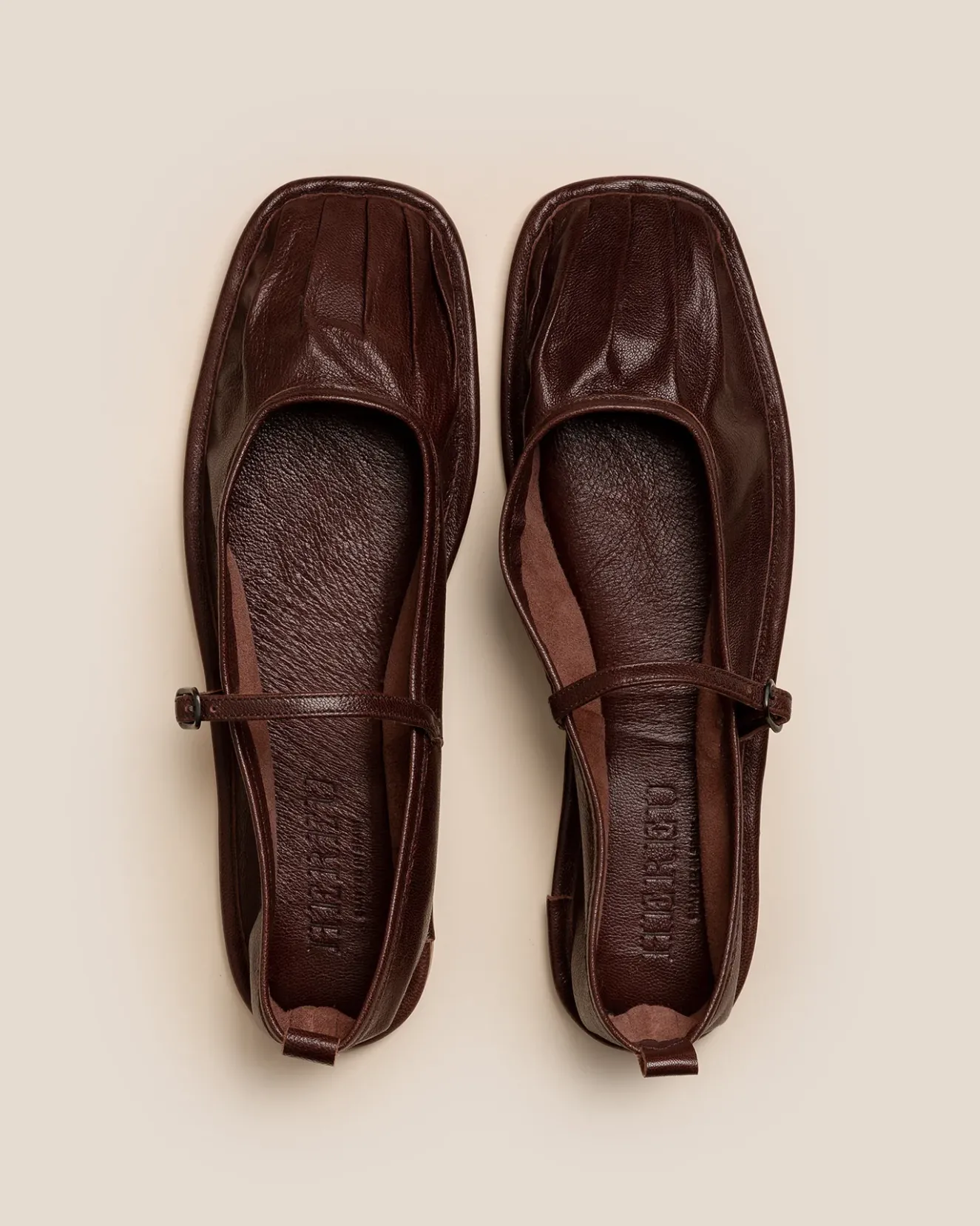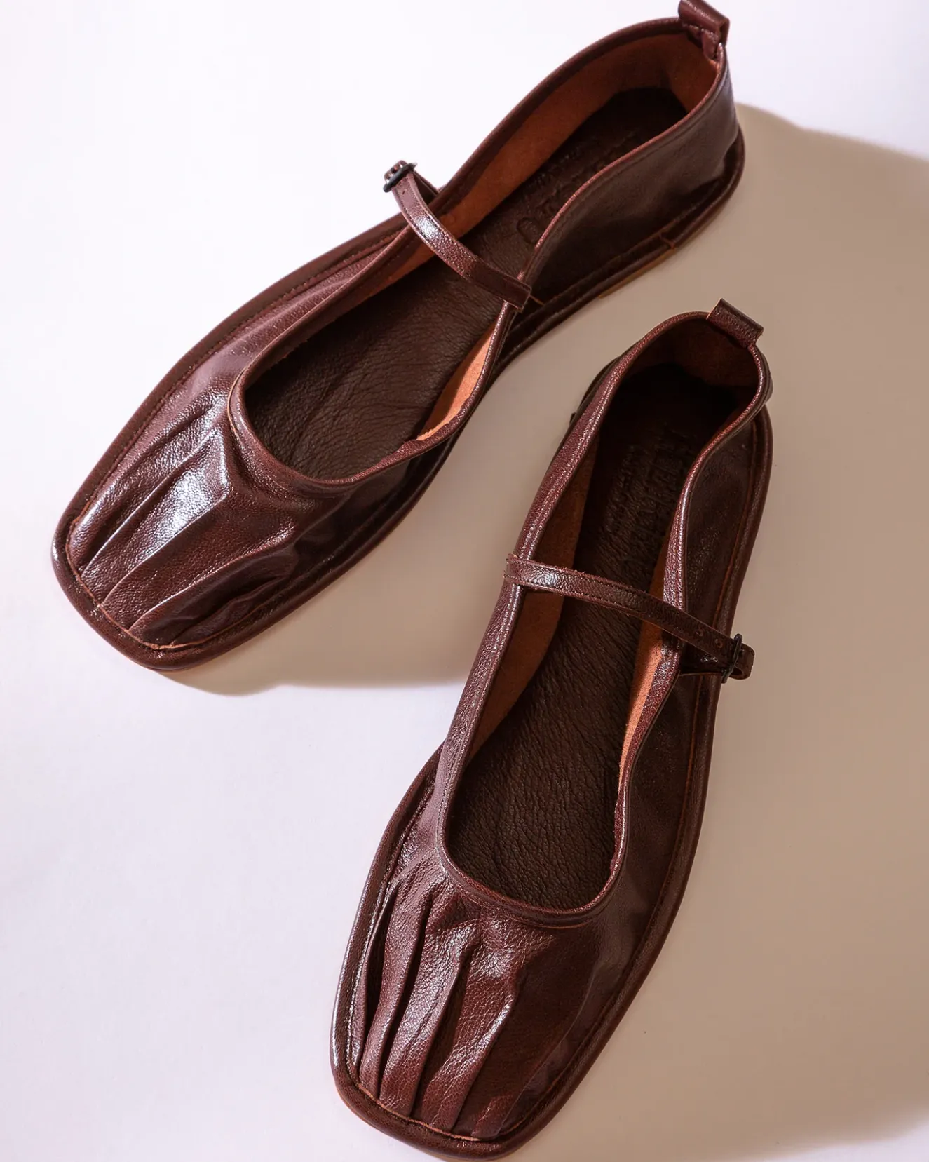 Pleated Toe Flat Mary Jane Crafted In Italian Supple Shiny Lambskin.Made In Spain By Uniquely Talented Artisans, Celebrating Excellence In Craftsmanship.