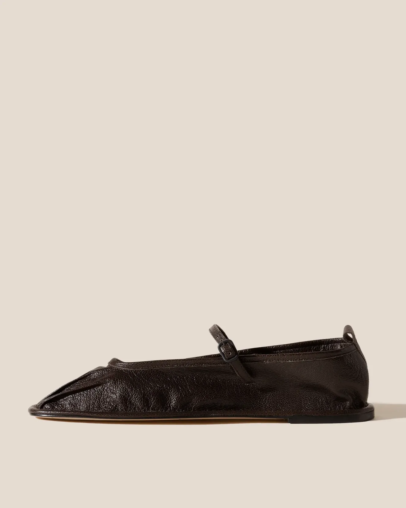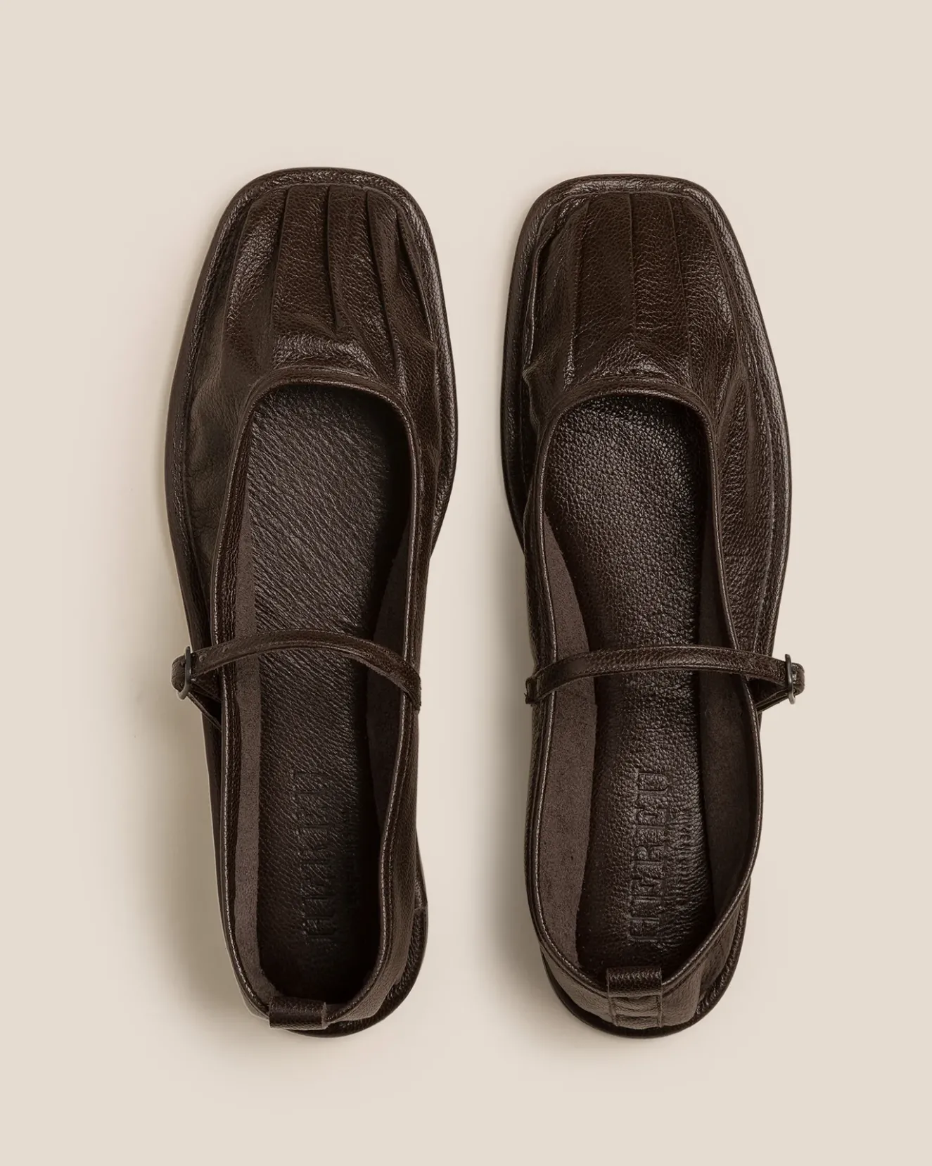 Pleated Toe Flat Mary Jane Crafted In Italian Supple Shiny Lambskin.Made In Spain By Uniquely Talented Artisans, Celebrating Excellence In Craftsmanship.