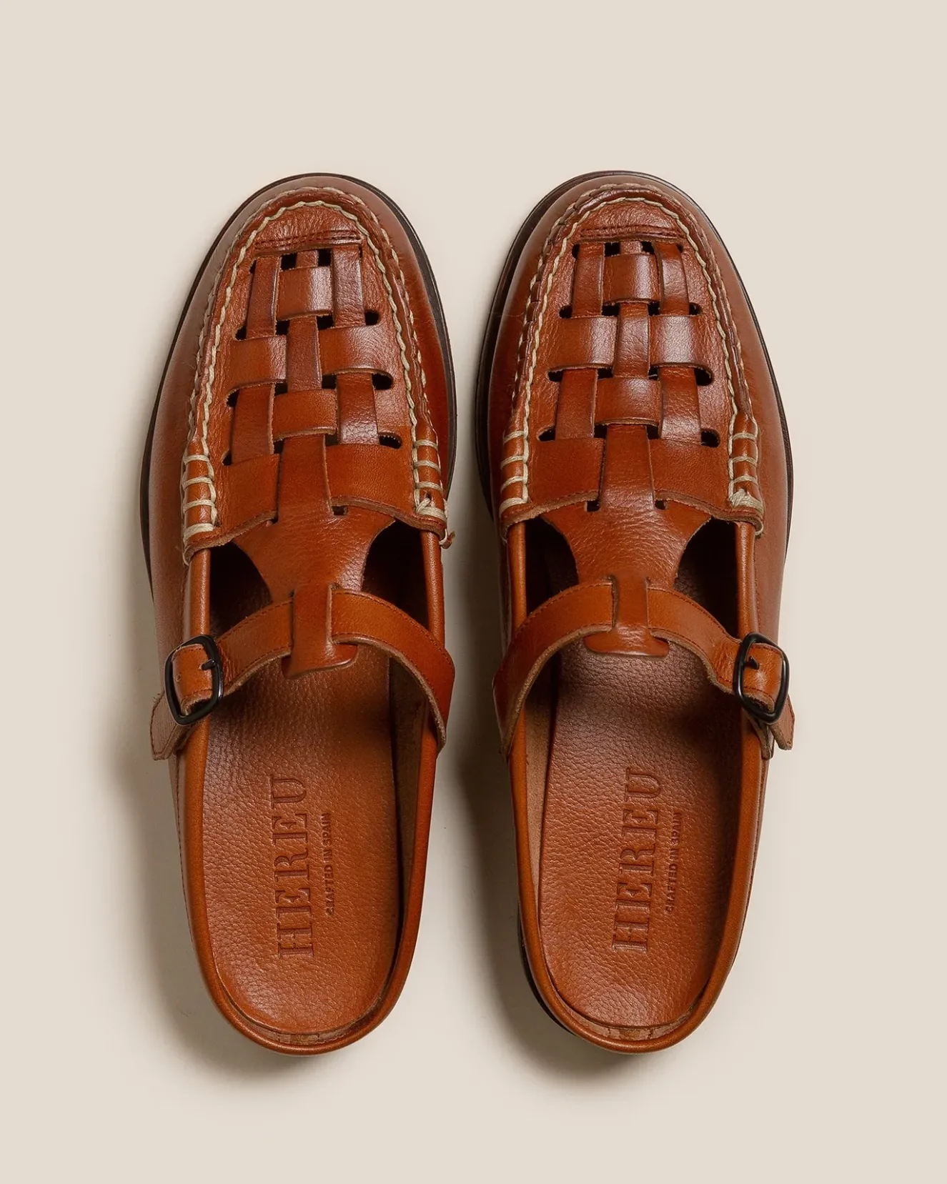 Woven T-Bar Mule Loafer Crafted In Spanish Grainy Veg-Tanned Calf Leather.Made In Spain By Uniquely Talented Artisans, Celebrating Excellence In Craftsmanship.