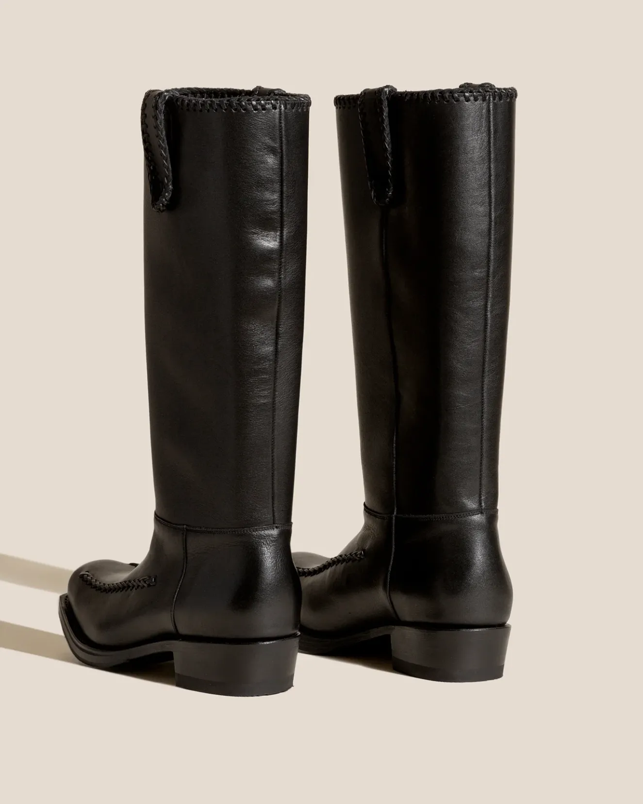 Heeled Square-Toe Under-The-Knee Boot With Braided Details.Made In Spain By A Traditional Riding Boots Factory, Celebrating Excellence In Craftsmanship.