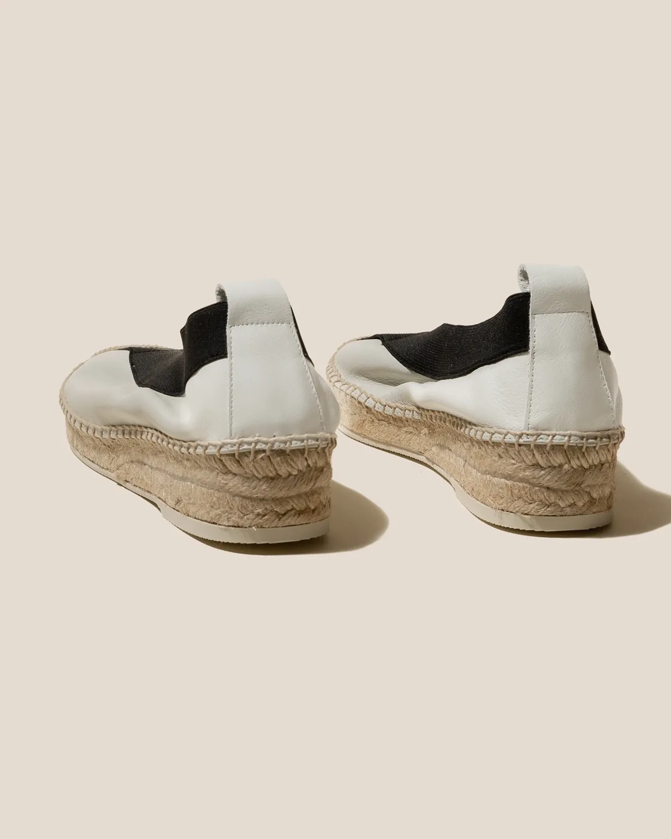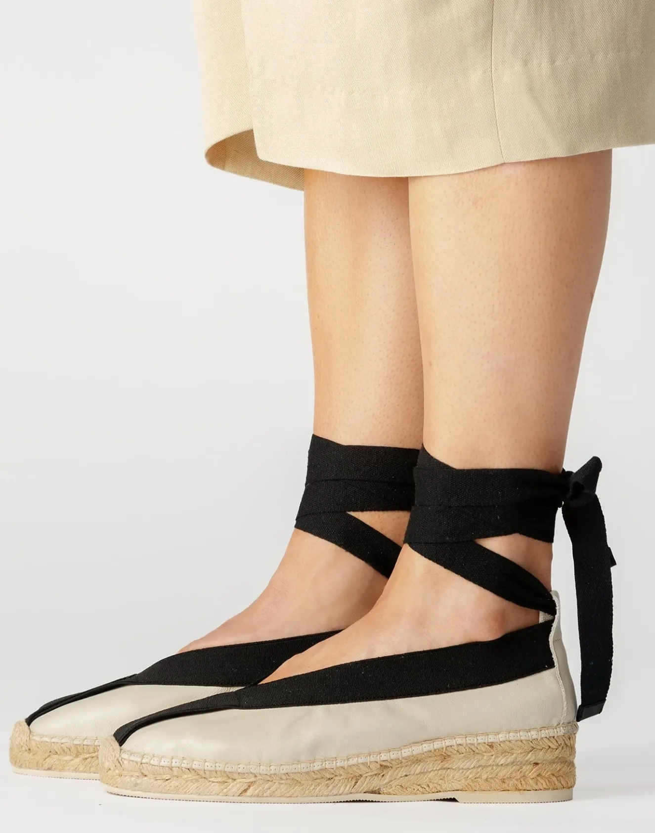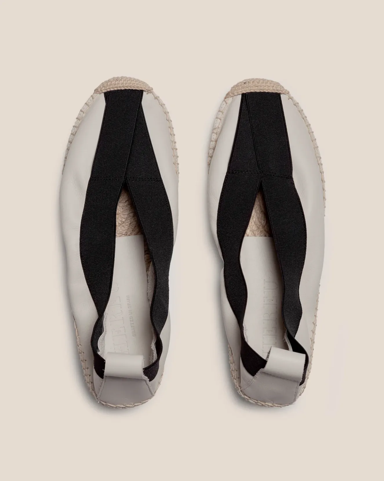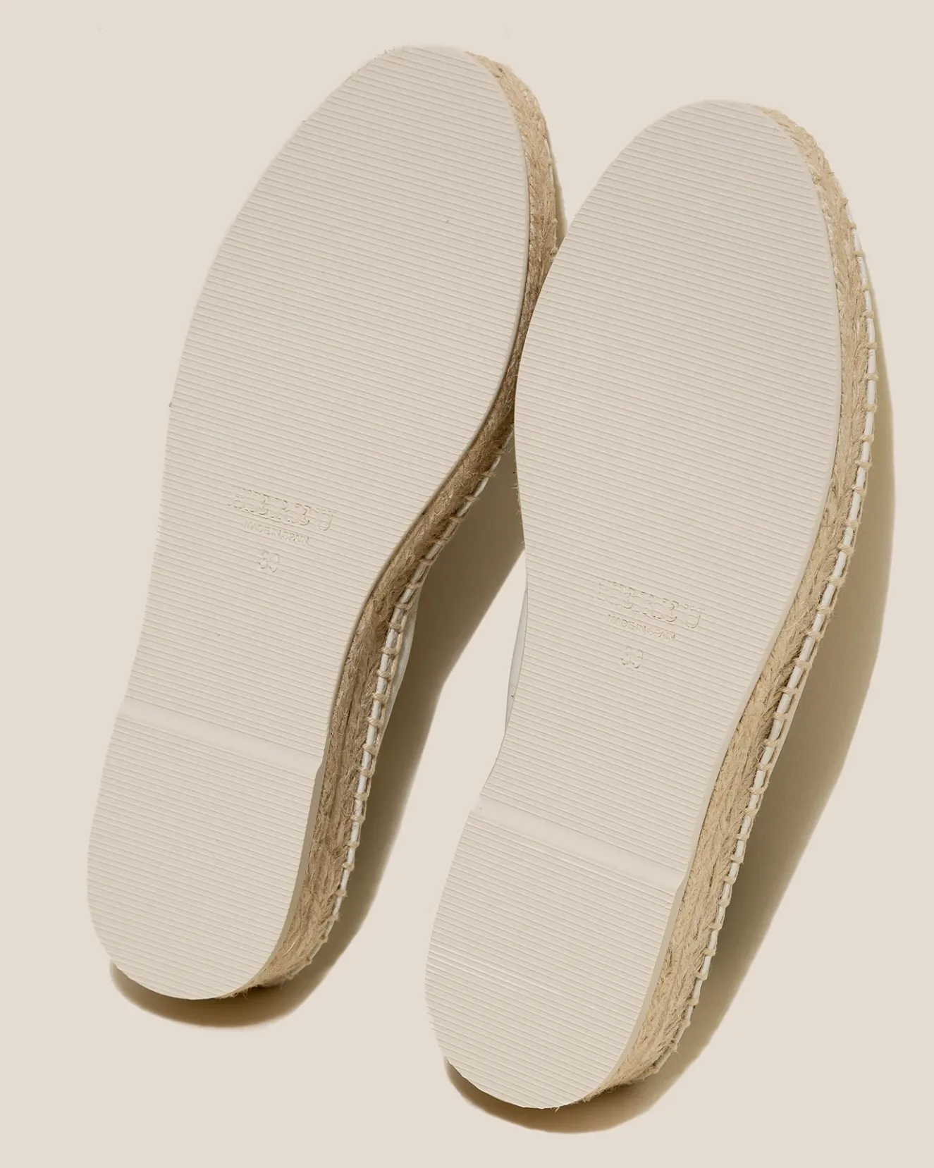 Cream Round-Toe V-Cut Pump Espadrille Wedge, Crafted In Unlined Calf Leather With Elasticated Top Line.Handmade In Spain By Uniquely Talented Artisans, Celebrating Excellence In Craftsmanship.