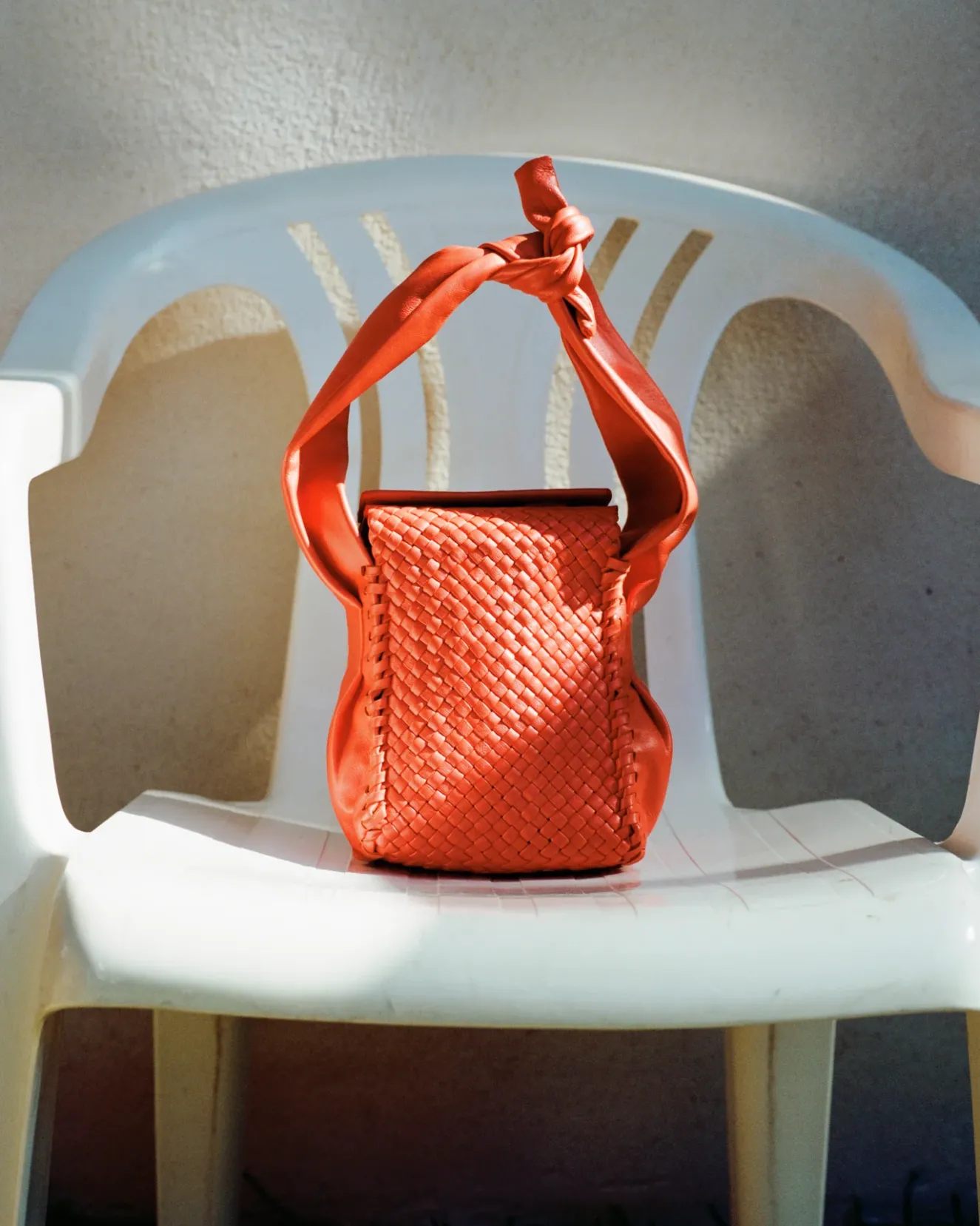 Handwoven Mini Box Bag Crafted In Supple Lambskin.Made In Spain By Uniquely Talented Artisans, Celebrating Excellence In Craftsmanship.