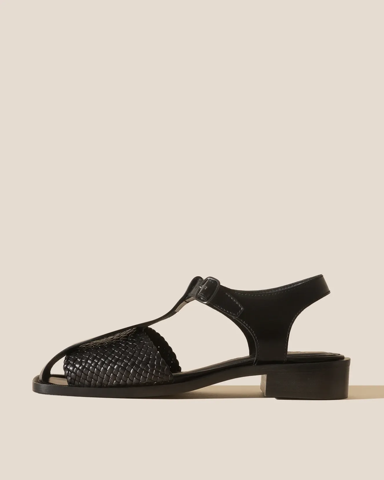 Woven Panel T-Bar Sandal Crafted In Goat Leather.Made In Spain By Uniquely Talented Artisans, Celebrating Excellence In Craftsmanship.