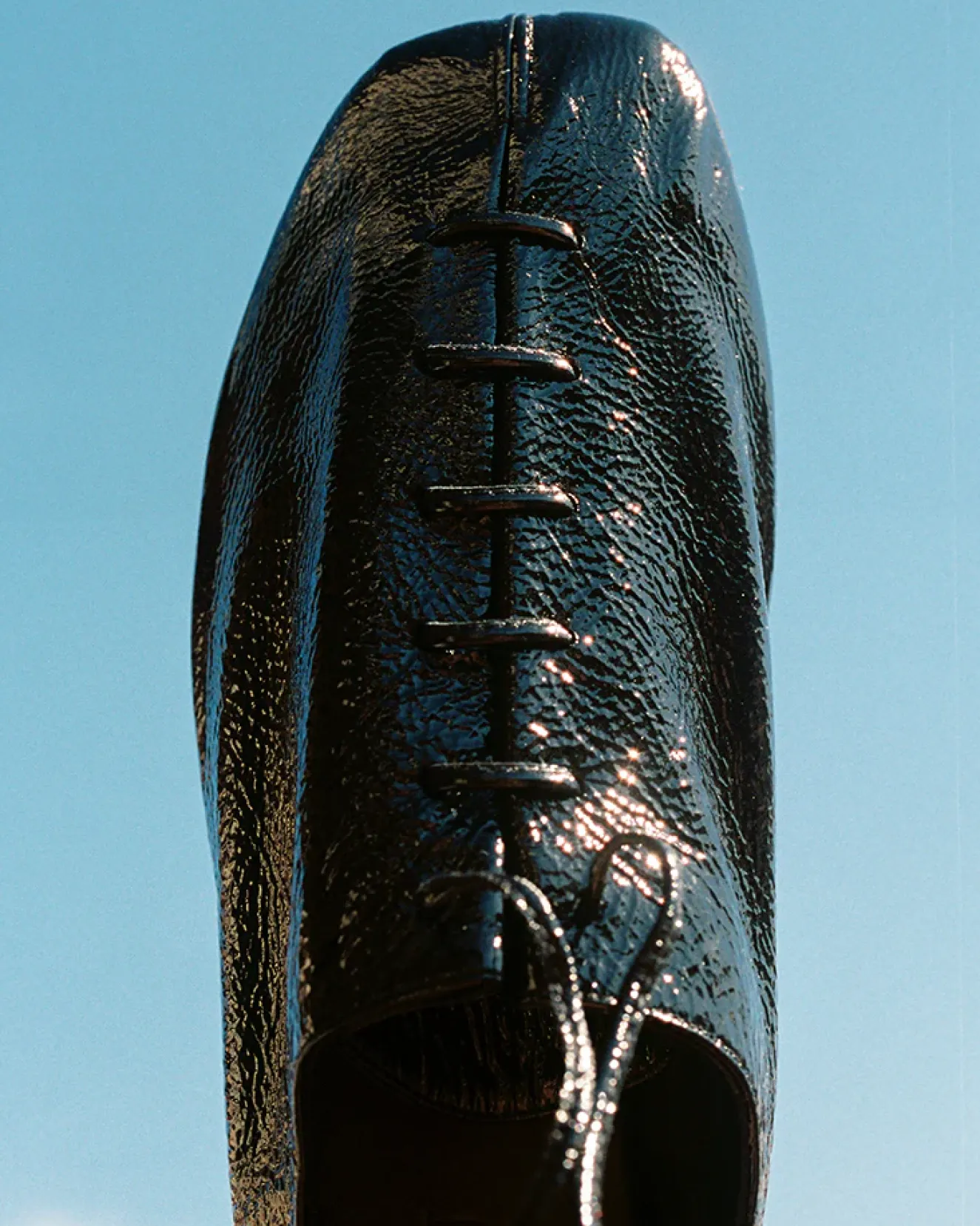 Flat Lace-Up Shoe With Bellows Tongue, Crafted In Unlined Italian Crinkled Glossy Lambskin.Made In Spain By Local Artisans, Celebrating Excellence In Craftsmanship.