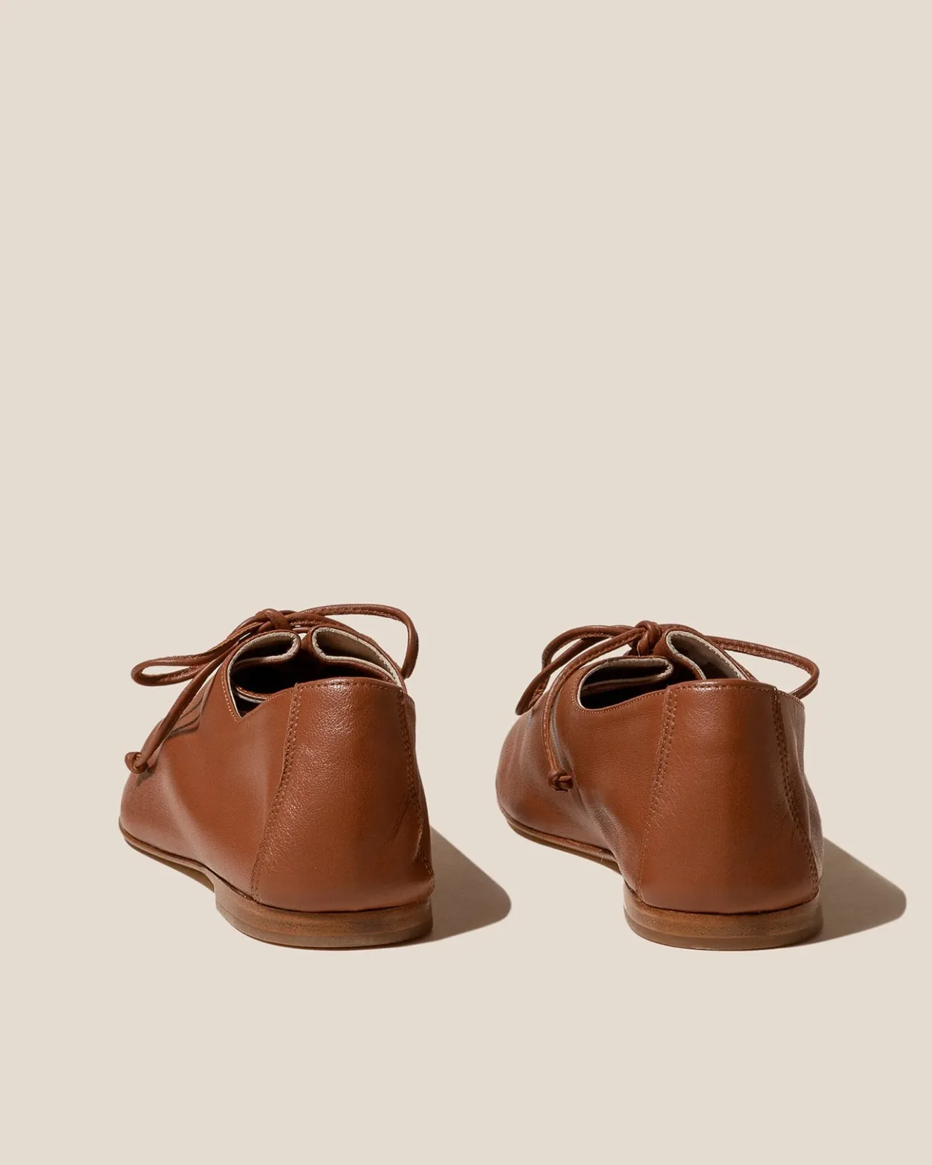 Round-Toe Flat Lace-Up Shoe With Bellows Tongue (One Piece). Crafted In Soft Calf Leather With Matching Leather Laces.Handmade In Spain By Uniquely Talented Artisans, Celebrating Excellence In Craftsmanship.