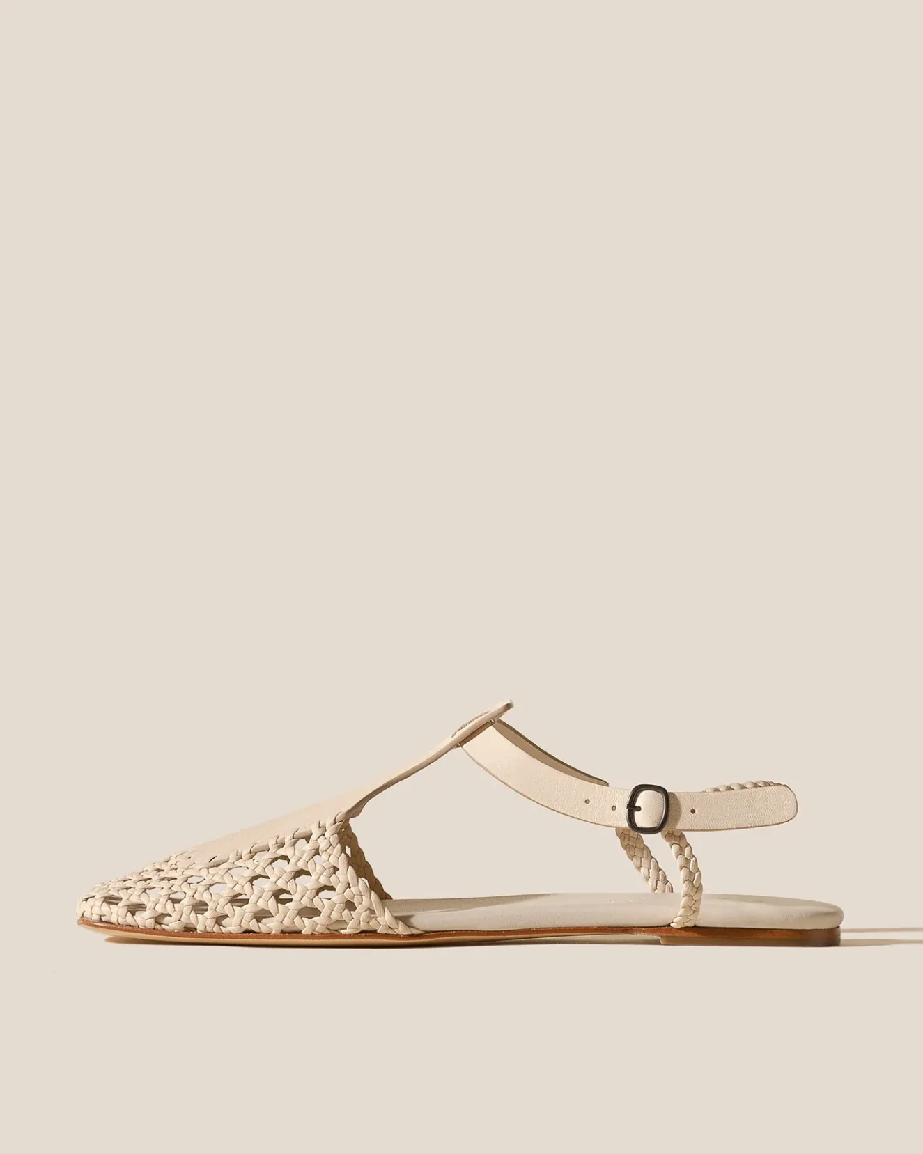 Square Toe Hand-Woven T-Bar Sandal Crafted In A Combination Of Veg-Tanned Calf Leather And Supple Lambskin.Handmade In Spain By Uniquely Talented Artisans, Celebrating Excellence In Craftsmanship.