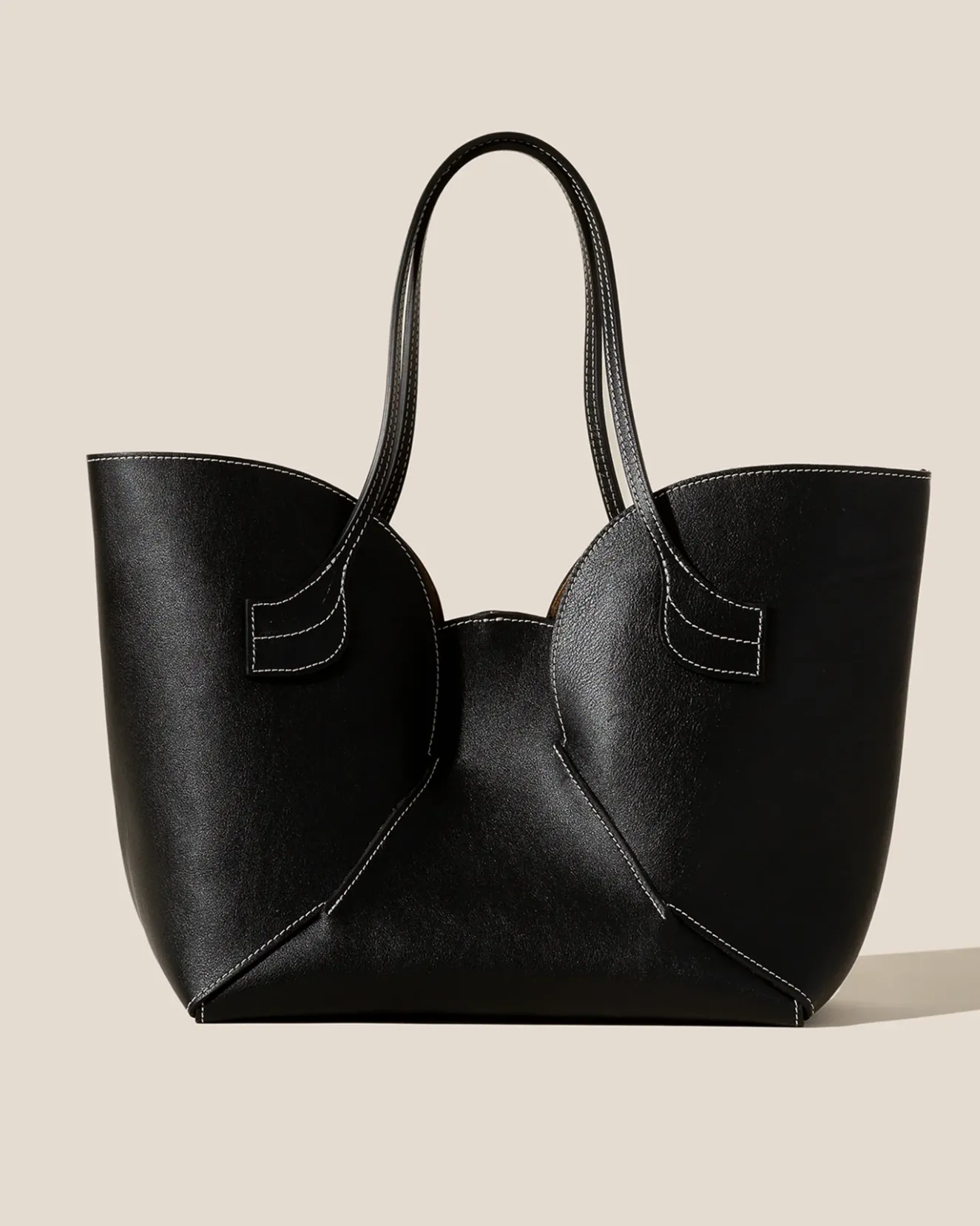 Tulip-Shaped Tote With Woven Detail Crafted In Shiny Polished Calf Leather.Made In Spain By Uniquely Talented Artisans, Celebrating Excellence In Craftsmanship.