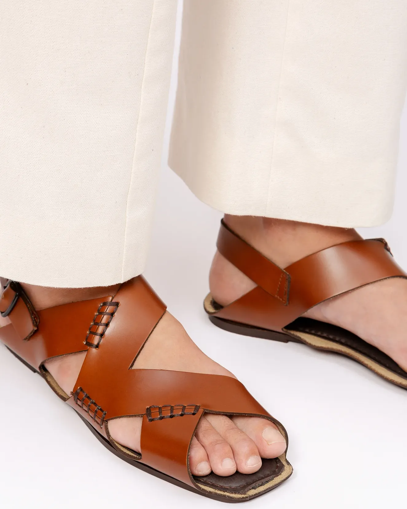 Flat Asymmetrical Sandal Crafted In Full-Grain Calf Leather.Made In Spain By Local Artisans, Celebrating Excellence In Craftsmanship.