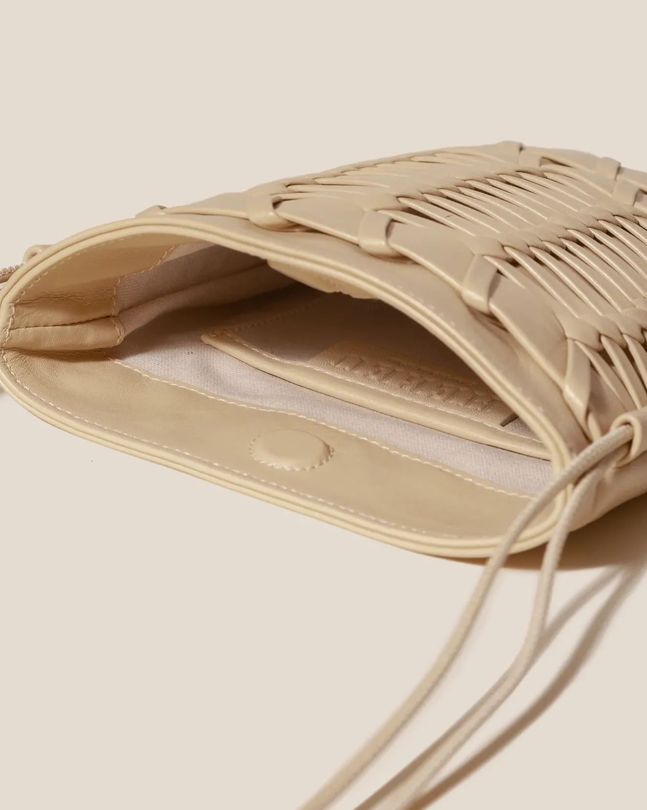 Flat Square Crossbody Bag Crafted In Soft Calf Leather, With A Handwoven Front Pocket.Made In Spain By Uniquely Talented Artisans, Celebrating Excellence In Craftsmanship.