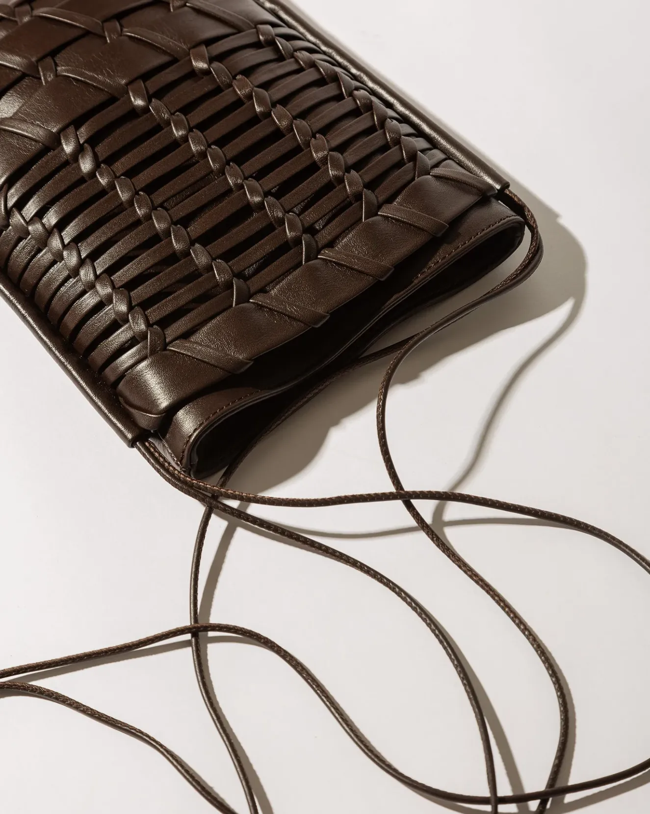 Flat Square Crossbody Bag Crafted In Soft Calf Leather, With A Handwoven Front Pocket.Made In Spain By Uniquely Talented Artisans, Celebrating Excellence In Craftsmanship.